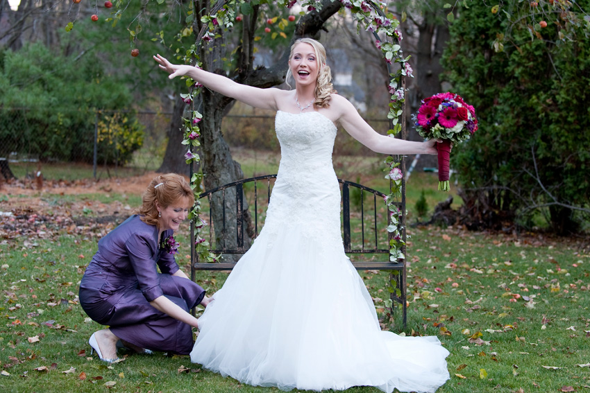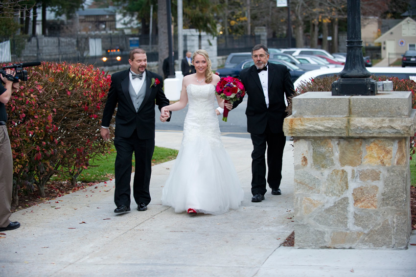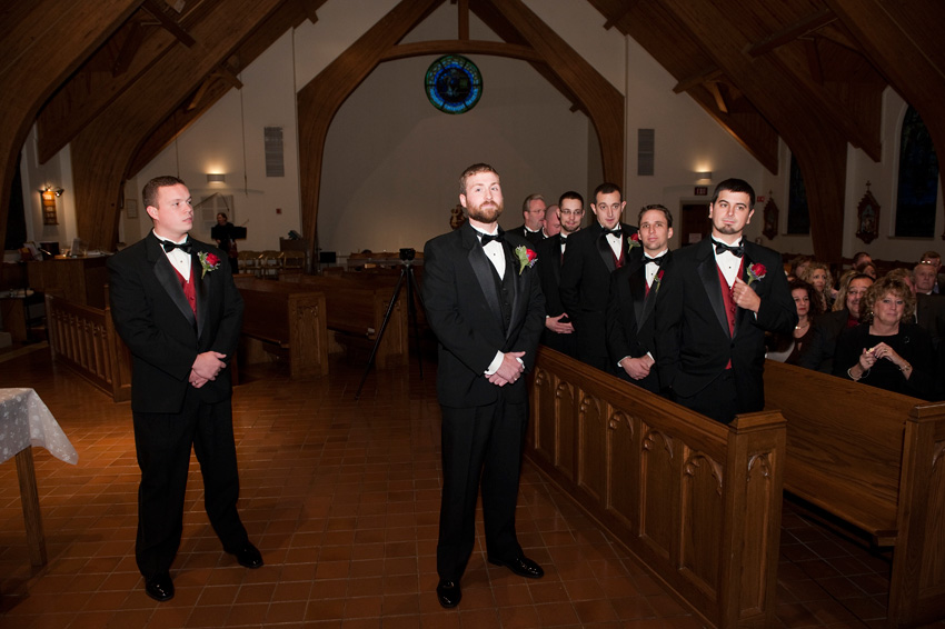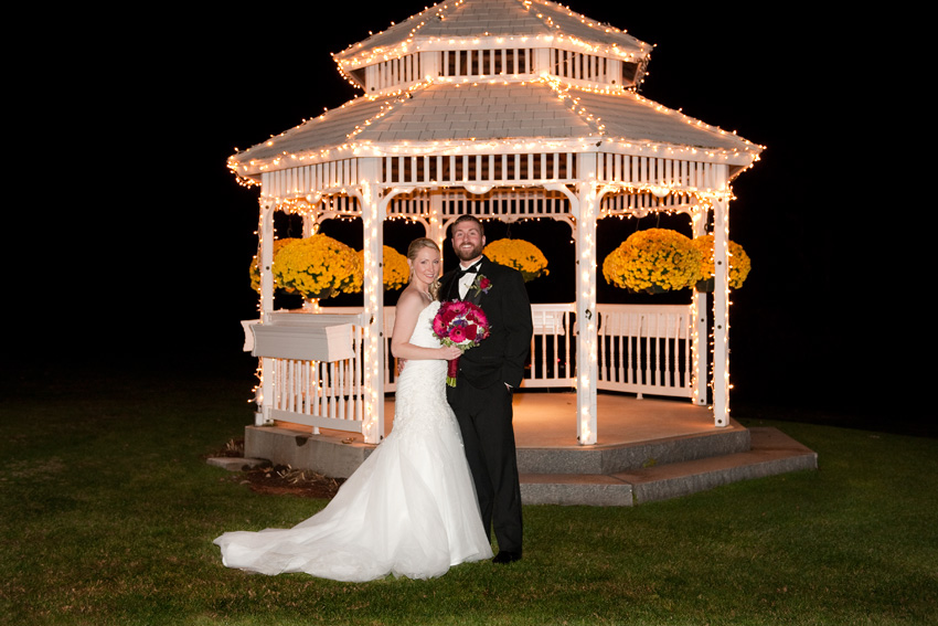 The prep was at the home of the bride's parents, with good weather, so we did the pre-ceremony formals outdoors, in good light. Then we were off to the church, where I noticed the groom peeking out to see how things were going. The church was quite wide, so the ultra-wide 14-24mm lens came into use. And after a beautiful ceremony, we went on to the Pelham Inn for the reception. They had a lit-up gazebo on the back lawn, for nightime shooting (my favorite shot of the day). The reception room had ceiling lights of various colors, red, yellow, green, and between those and the videographer lights going on and off, the colors were constantly changing. This was my last wedding of the season, and a really good one to end on. I enjoyed myself (as usual), and got really good shots. A highly successful wedding, and congratulations to all!