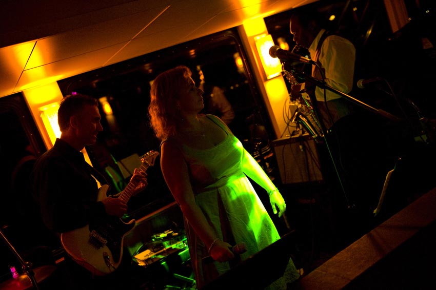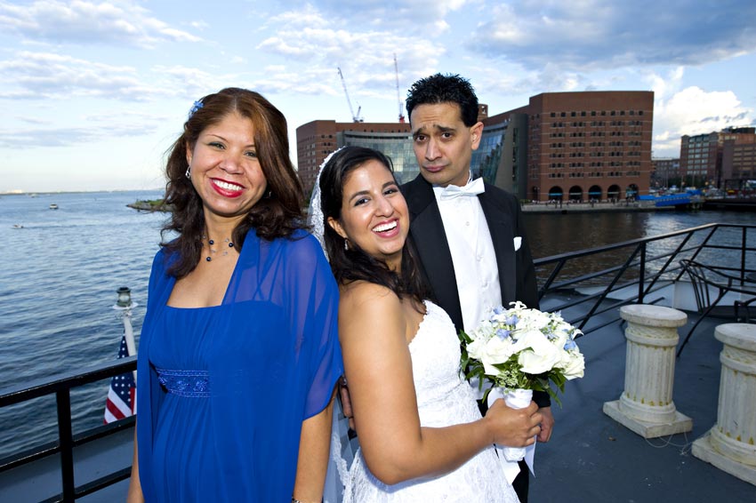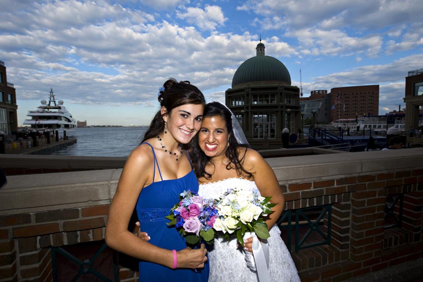 Everyone was relaxed and having fun getting ready, and the ceremony was gorgeous. Photos on the upper deck of the Odyssey showed the entire harbor in brilliant sunlight. As we pulled out of port, just after sunset, there were beautiful shots of Rowe's Wharf and the Boston skyline. What more could you ask? And THEN, the Bride and Groom entertained us for the last hour of the cruise (and they were really talented, too)! I have to say, I really enjoyed myself. Thanks, Chrissy and Joey!