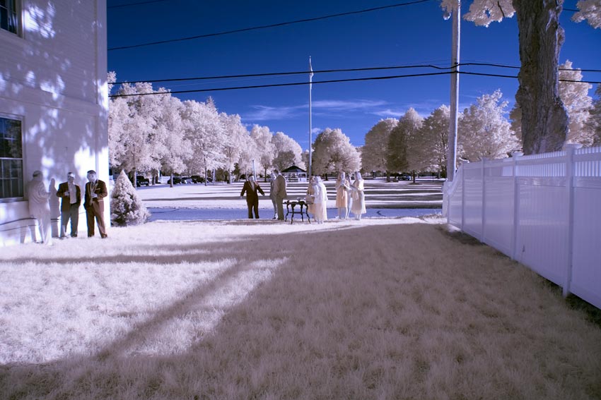 Another incredibly bright, sunny day! The prep was at the home of the bride's parents. Unfortunately, the flower girl was too shy to participate in the photos very much, but we got lots of shots of everyone else. Then off to the church with its beautiful architecture, and on to the Topsfield Commons for the formals and reception. We were able to get a few infrared shots, with the usual startling colors, and in the reception, UpLights were in use, which provided lots of interesting colors to the dancing in the later parts of the evening. It was all a great success!