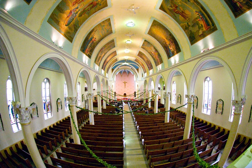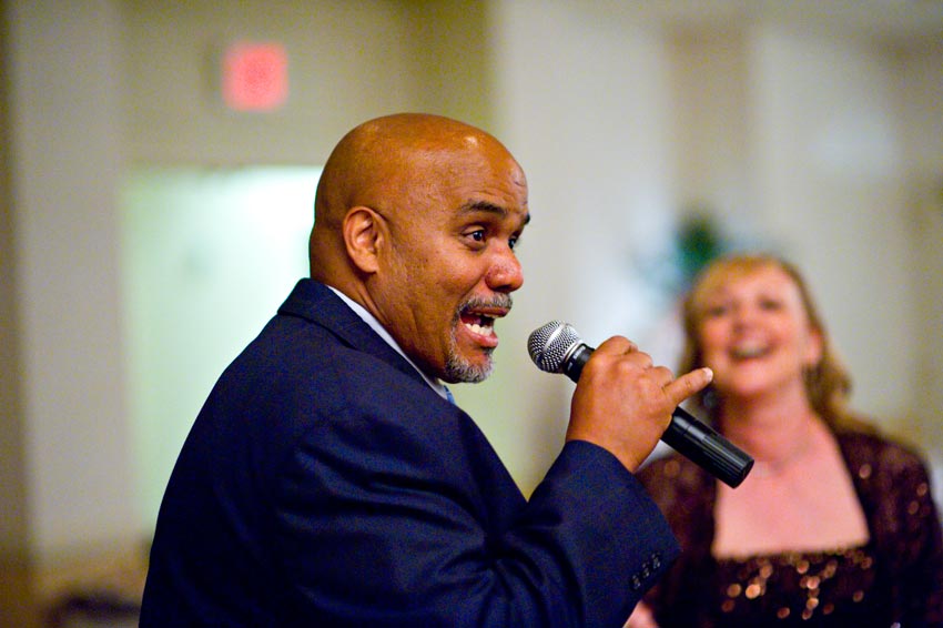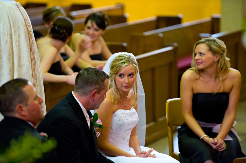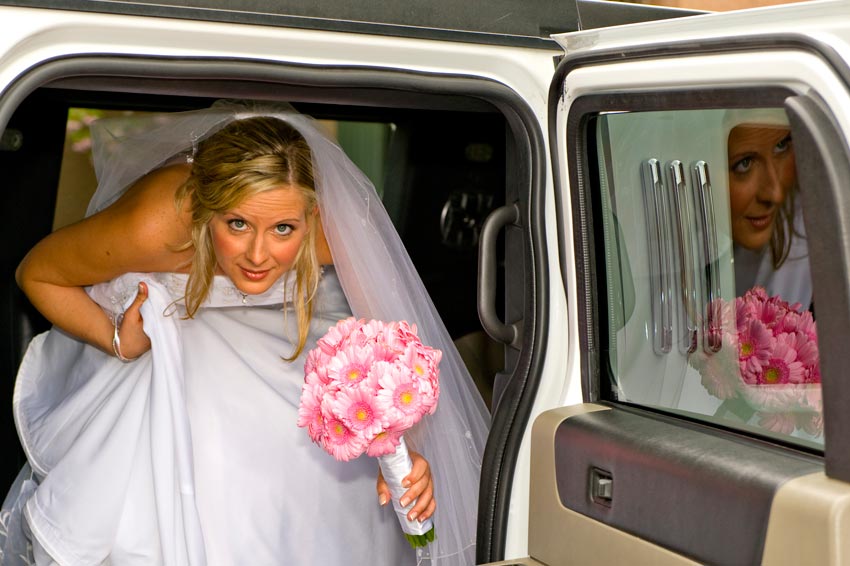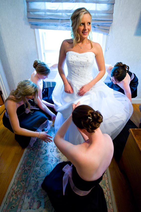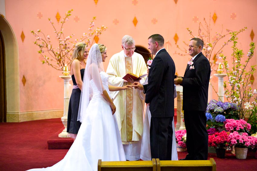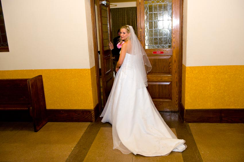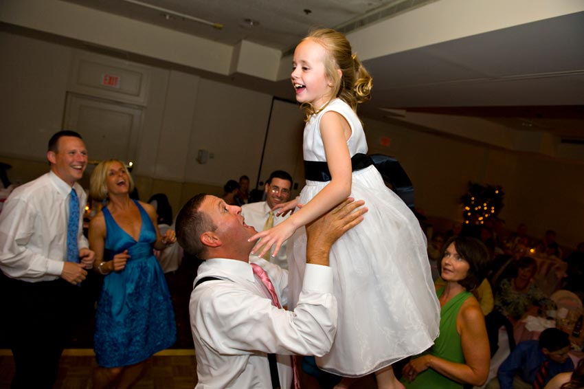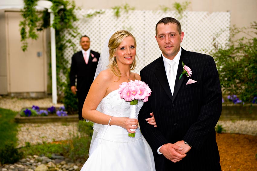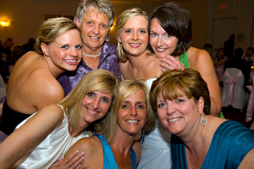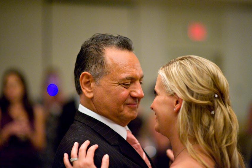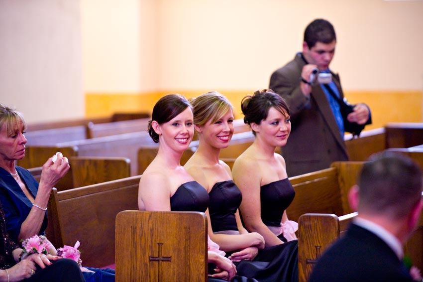 The ceremony was at St. Mary's Parish in Waltham, the largest church I've been to in quite a while. The ceiling had huge panels of paintings, kind of a Sistine Chapel look; you can see them in the fish-eye shot from the balcony. Also, check out the window-reflection in the shot of the bride getting out of the limousine. The reception was at the Doubletree hotel, also in Waltham. Look carefully at the two pictures of the cake --- that little dog figure on the top of the cake mirror's the bride's little doggy (sorry, not seen in these photos). Lot's of dancing, great music, good people, good fun. I had a great time!