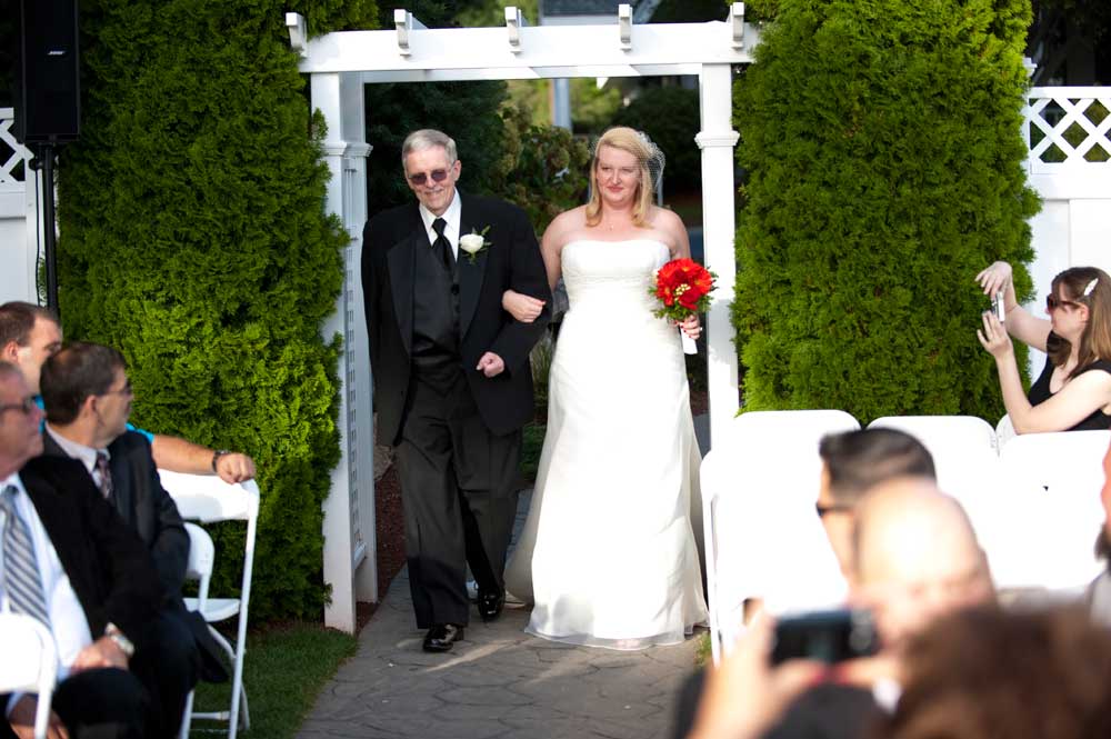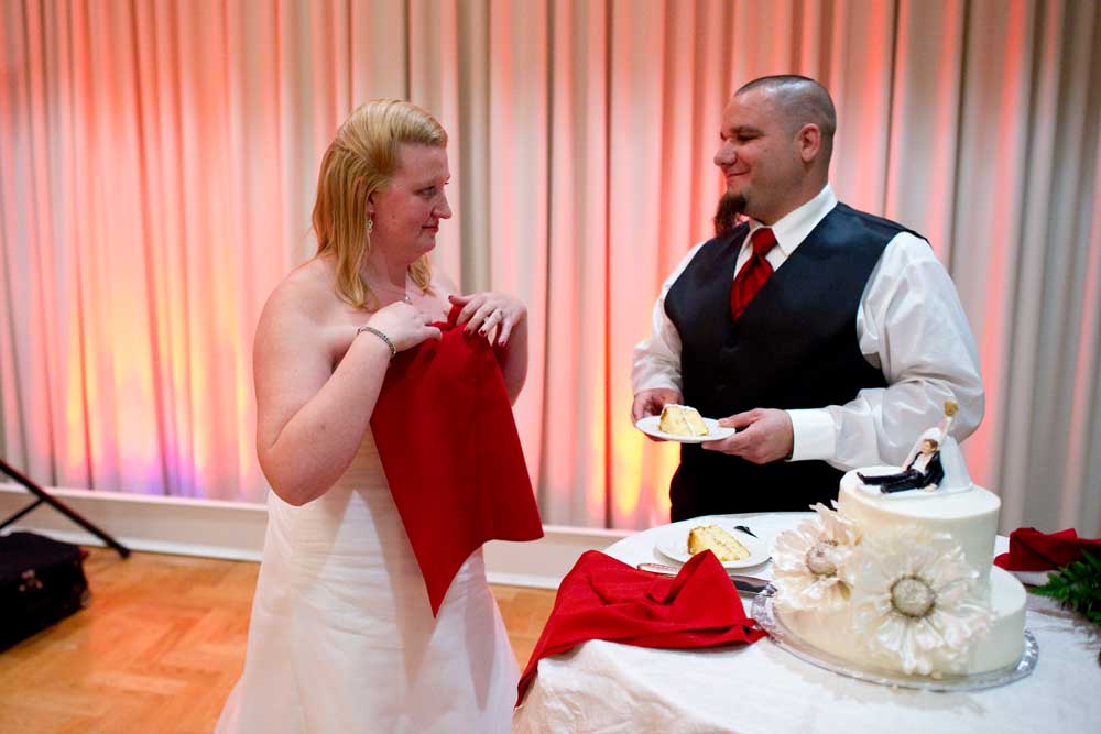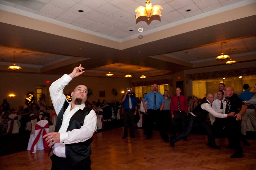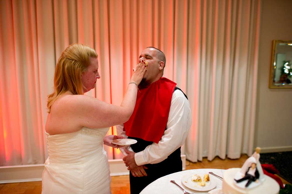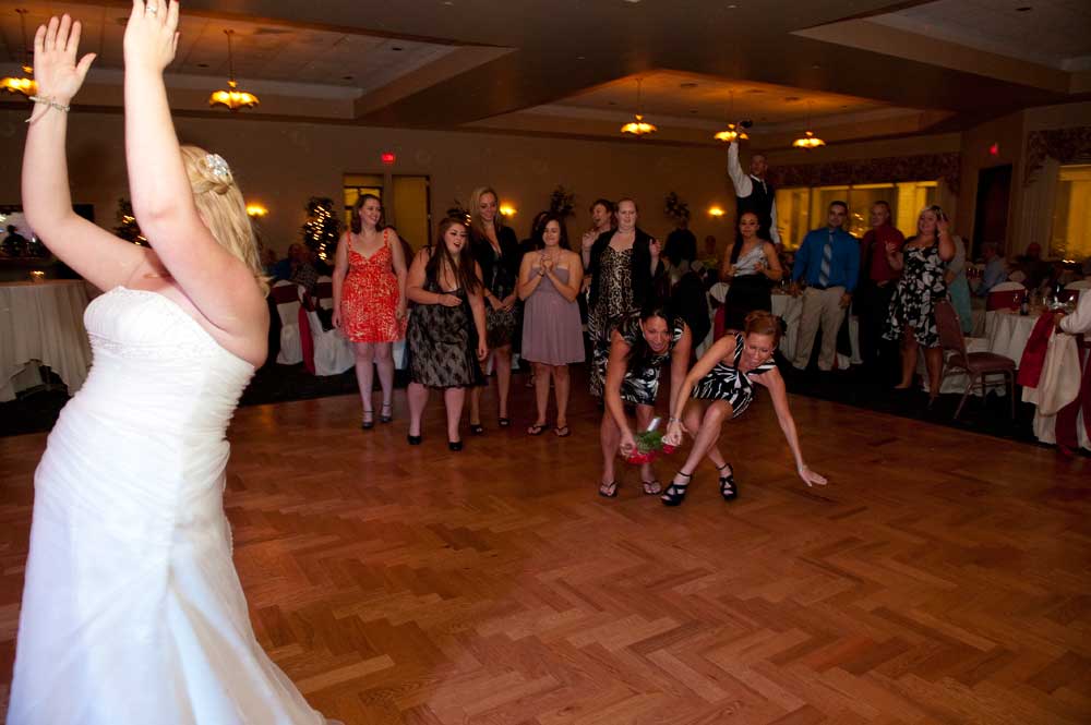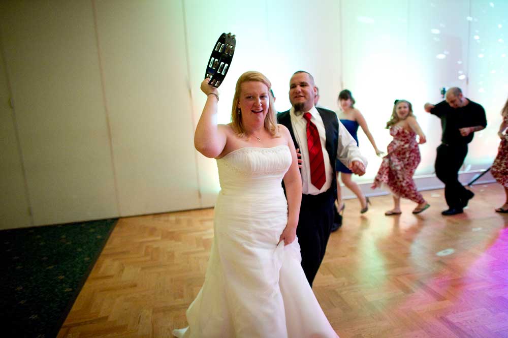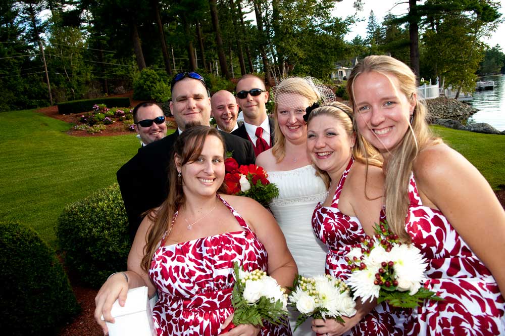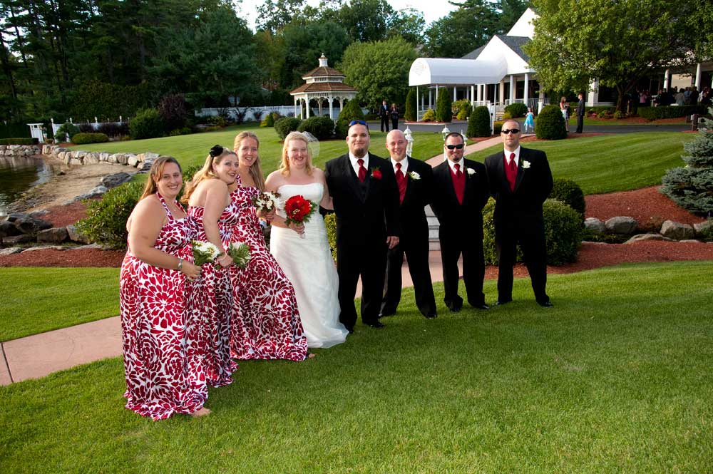 The weather was bright and sunny at Castleton, so we got great formals at the various locations, including the waterfall. The Maid of Honor dissolved into tears (I got a nice shot of it) during her toast, and the cake cutting was quite a "smashing" event. There was a conga line, with tambourine, and a variety of dancing. Late evening shots of the exterior of the grounds rounded out a colorful, fun day. It was a great, fun, wedding!