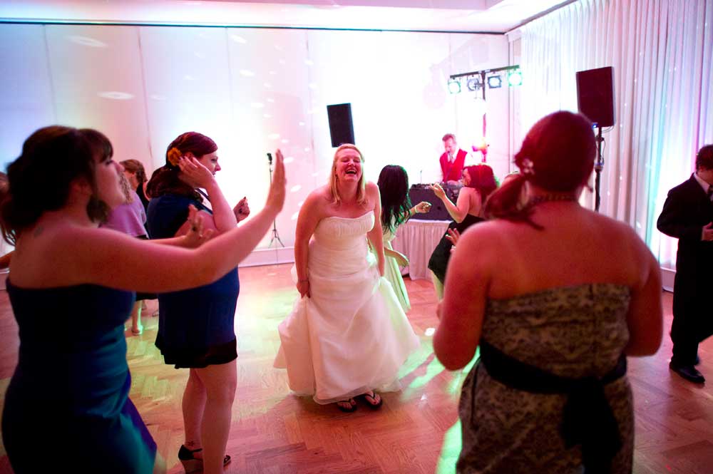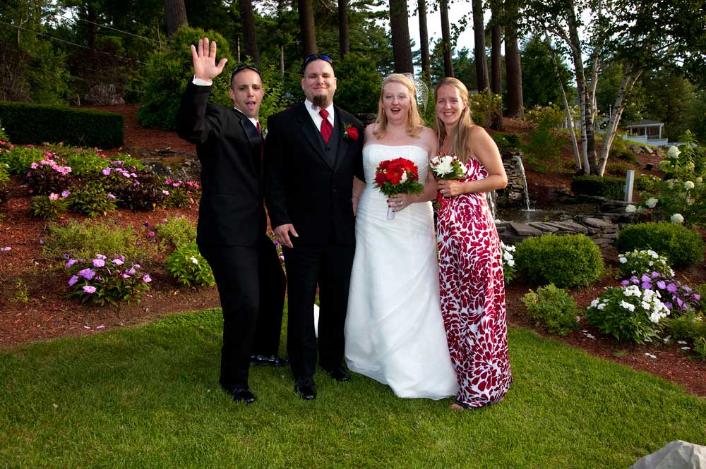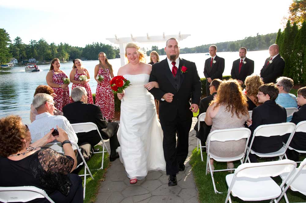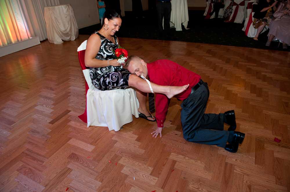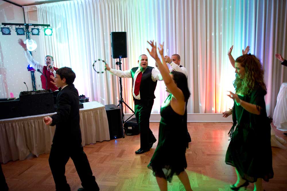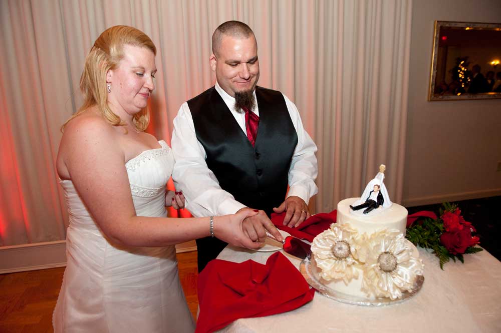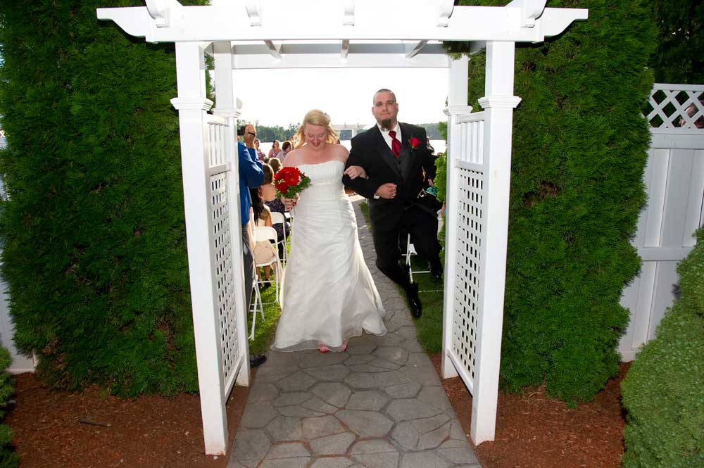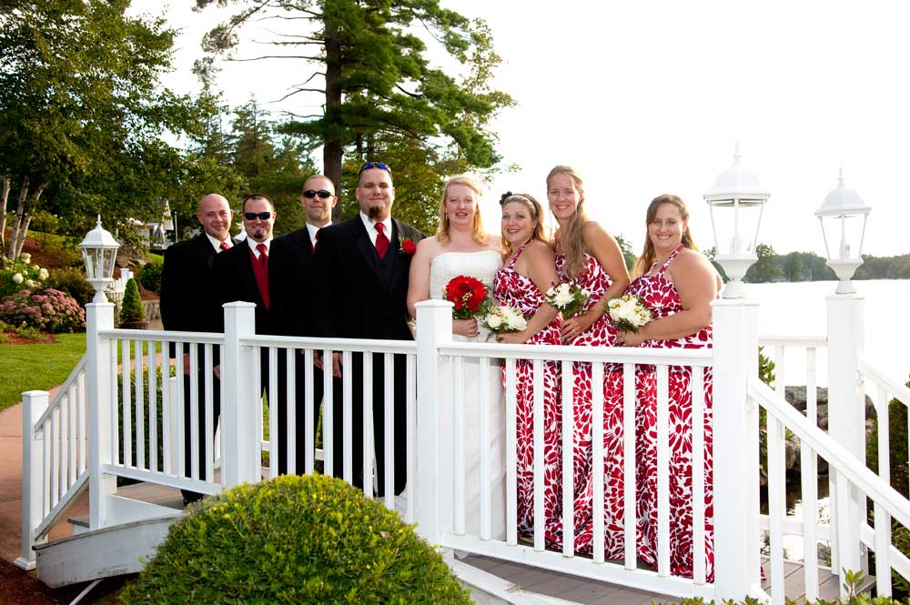 The weather was bright and sunny at Castleton, so we got great formals at the various locations, including the waterfall. The Maid of Honor dissolved into tears (I got a nice shot of it) during her toast, and the cake cutting was quite a "smashing" event. There was a conga line, with tambourine, and a variety of dancing. Late evening shots of the exterior of the grounds rounded out a colorful, fun day. It was a great, fun, wedding!