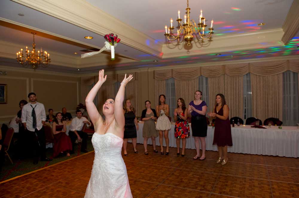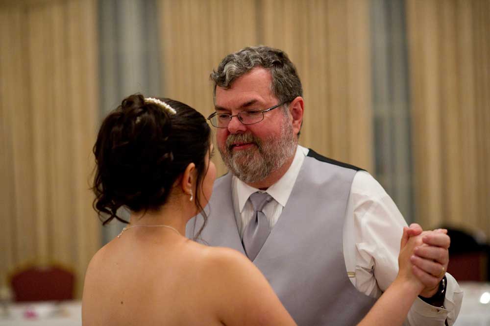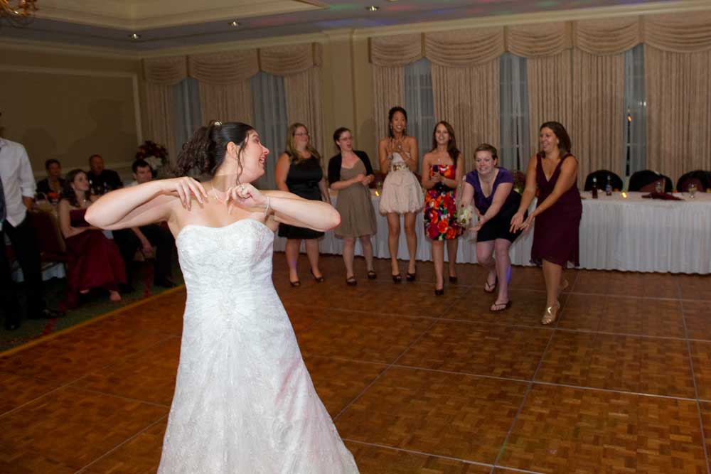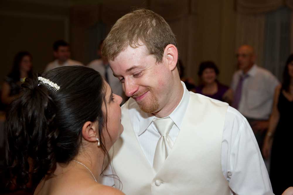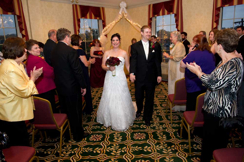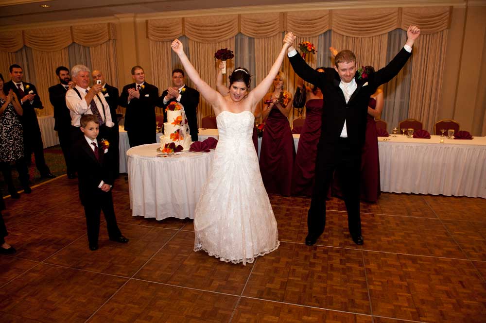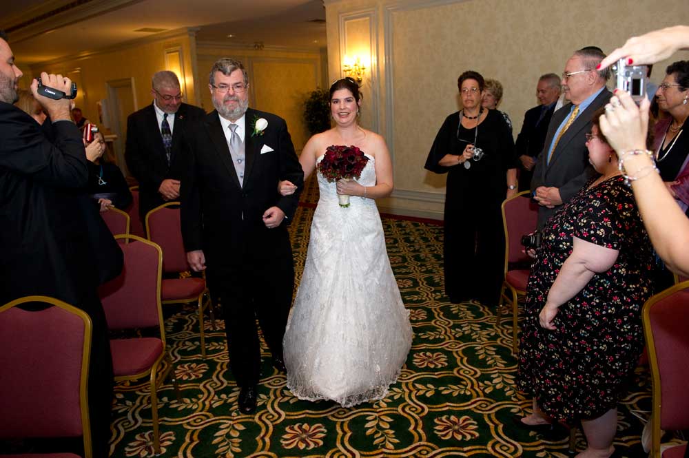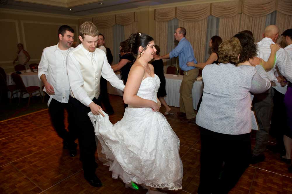 In the famous line from Snoopy, "It was a dark and stormy night...", only on this wedding day, it was dark and rainy all day as well as all night. But, it didn't matter because the bride and groom had astutely planned everything indoors, at the Radisson Hotel. Big rooms, huge mezzanine, dramatic sweeping staircases --- what could be better? We photographed in almost every nook and cranny we could find. The groom is expert in photography and photoshop, but luckily for me, he left his camera home, and counted on me instead. We had great music (with lots of flashing, multicolored lights), and therefore great dancing, jumping, jiving, conga line, and a dance competition led by the DJ. Dinner was delicious -- I had the prime rib -- yum! It was a complete day and night of fun!