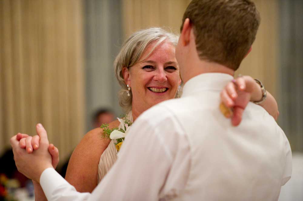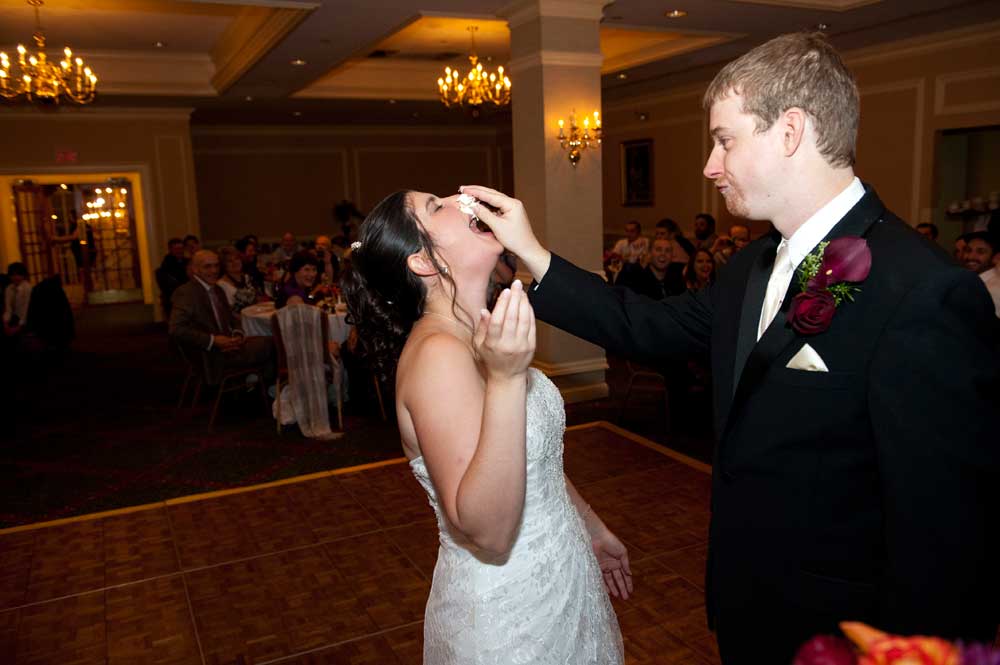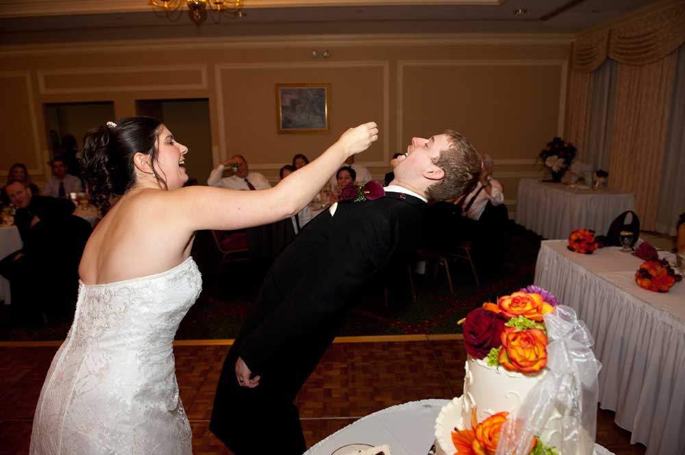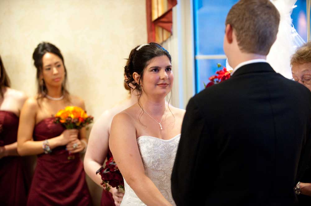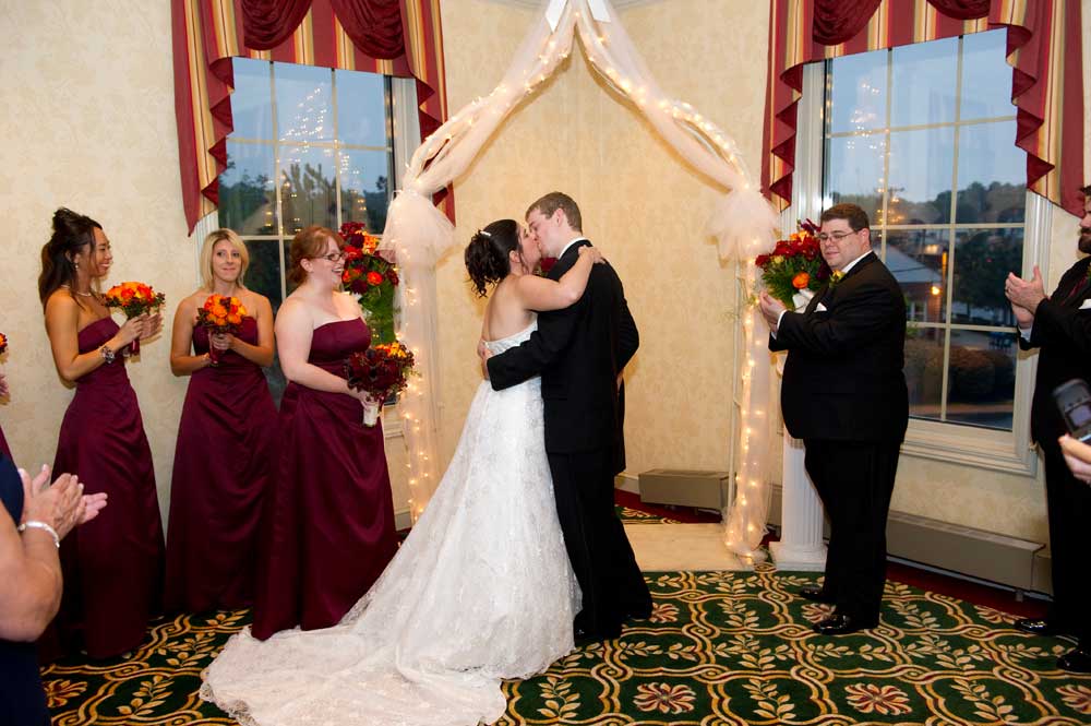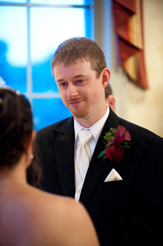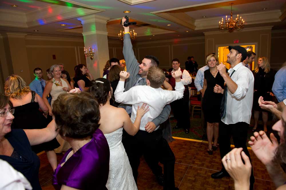 In the famous line from Snoopy, "It was a dark and stormy night...", only on this wedding day, it was dark and rainy all day as well as all night. But, it didn't matter because the bride and groom had astutely planned everything indoors, at the Radisson Hotel. Big rooms, huge mezzanine, dramatic sweeping staircases --- what could be better? We photographed in almost every nook and cranny we could find. The groom is expert in photography and photoshop, but luckily for me, he left his camera home, and counted on me instead. We had great music (with lots of flashing, multicolored lights), and therefore great dancing, jumping, jiving, conga line, and a dance competition led by the DJ. Dinner was delicious -- I had the prime rib -- yum! It was a complete day and night of fun!