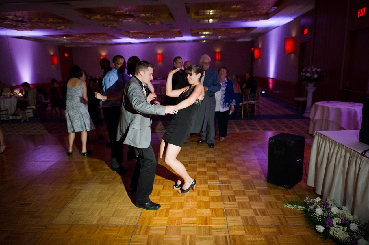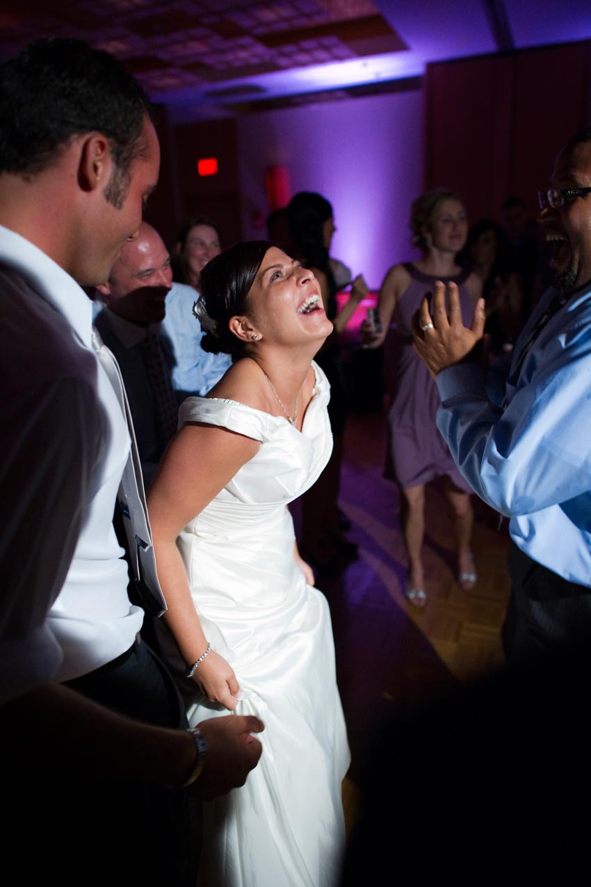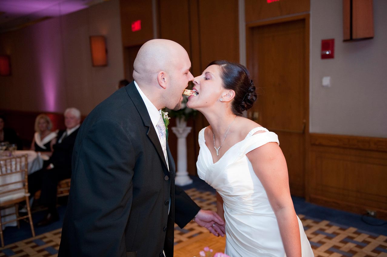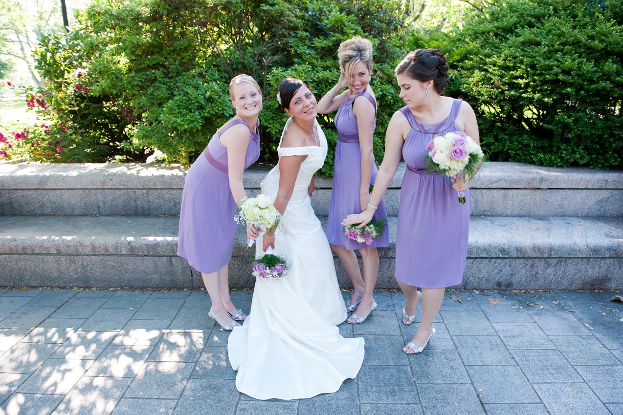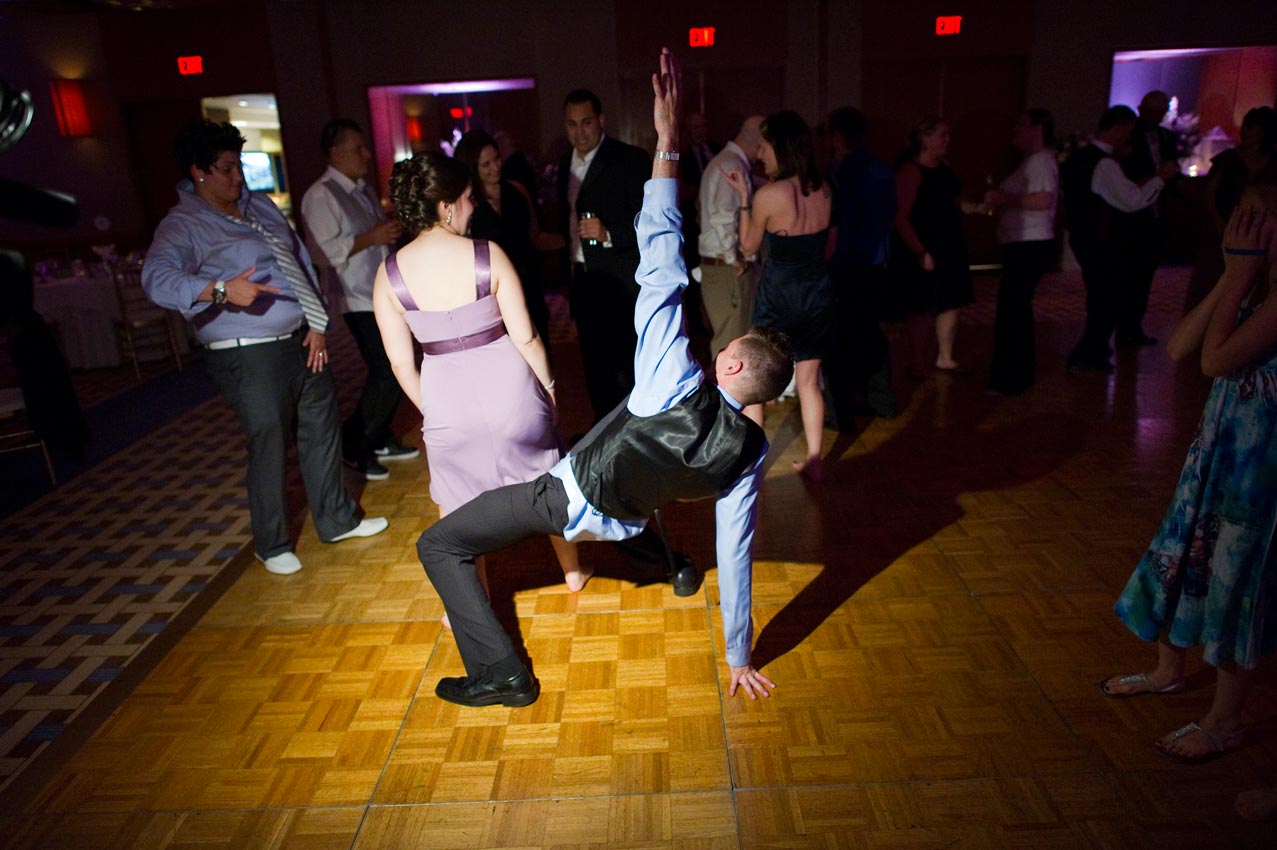 The prep, ceremony, and reception were at the Charles Hotel, in Cambridge, under a strong sun in a cloudless sky. The formals were two blocks down, at J.F. Kennedy Park, by the Charles River. I liked all the vary-colored lights at the reception. About halfway through the evening, someone turned the lights completely off, and the room was lit only by the colored uplights, and the videographer's video light. It was a very interesting "nightclub" look. The food was fantastic - huge filet mignons cooked perfectly, with a delicious sauce over mashed potatoes, asparagus, and baby carrots (that's the one I had - the grilled balsamic chicken with sun-dried cherry demi glaze and herb risotto cake looked delicious also). It was a great wedding; congratulations to Irma and Bryan, and their families!