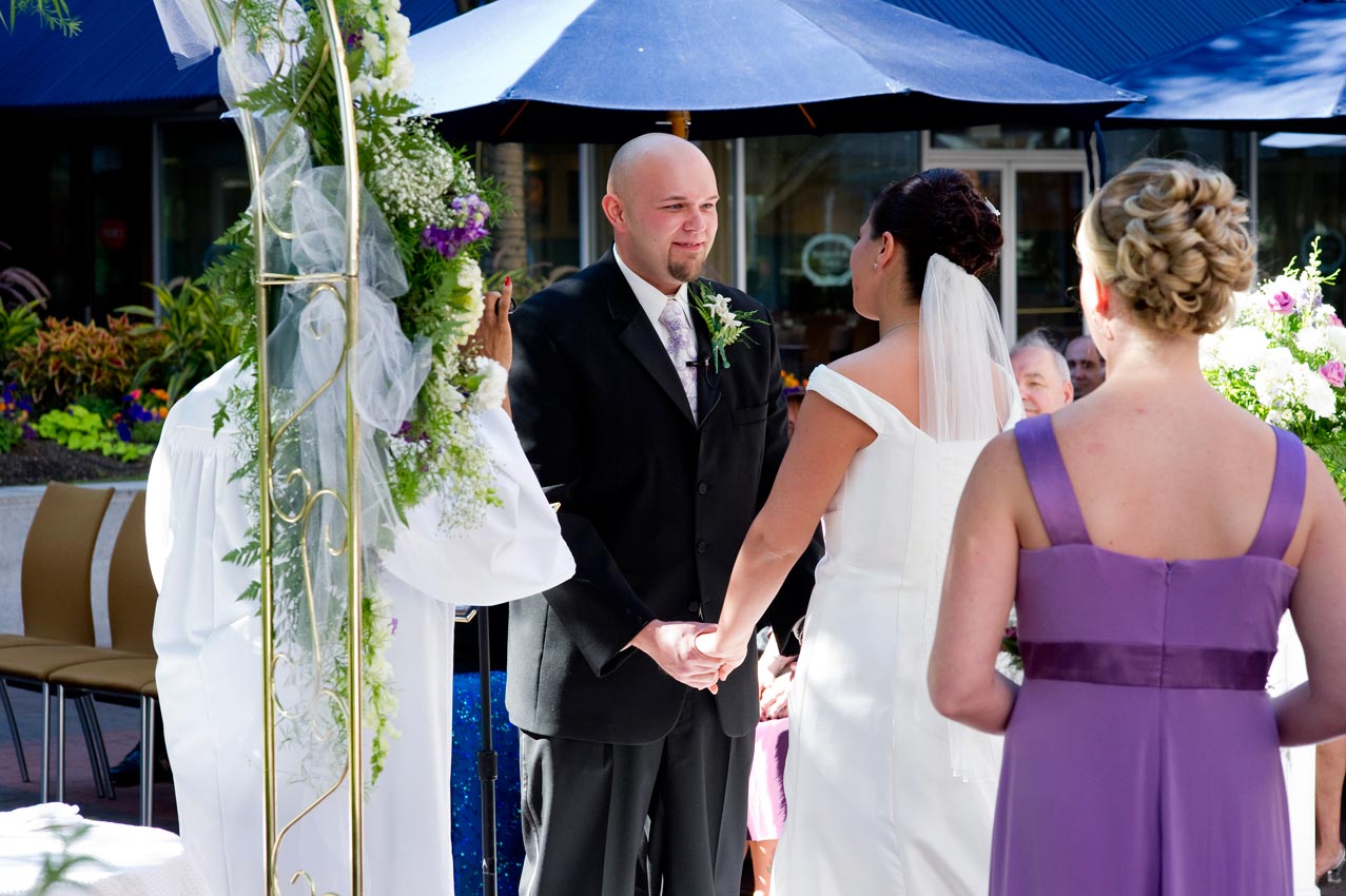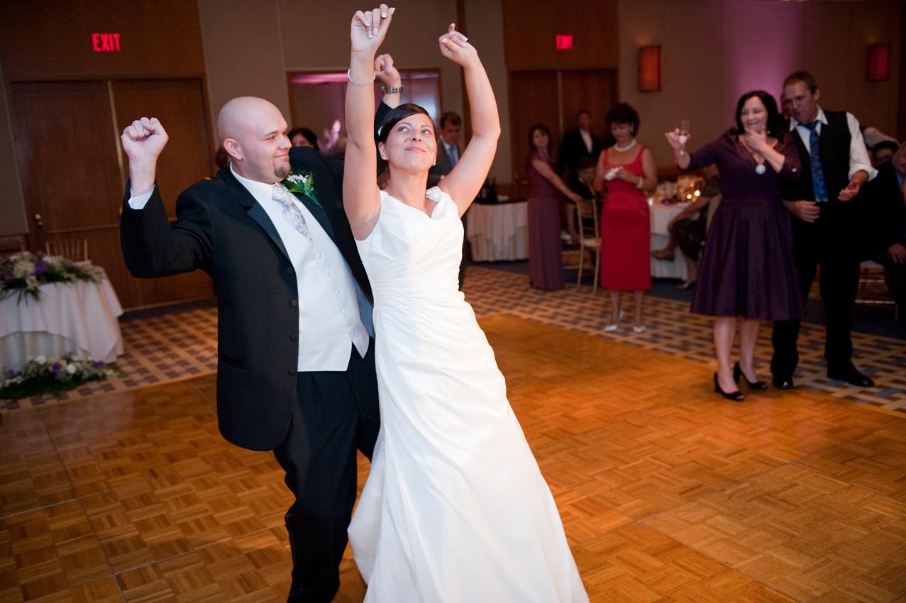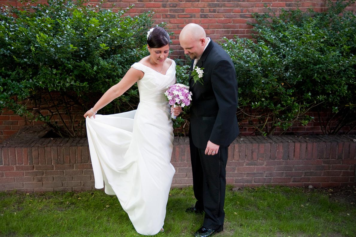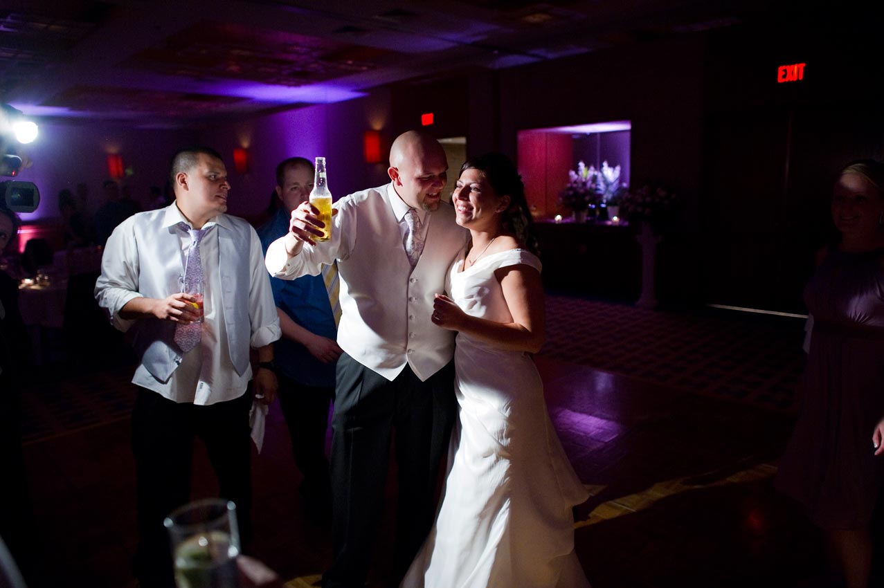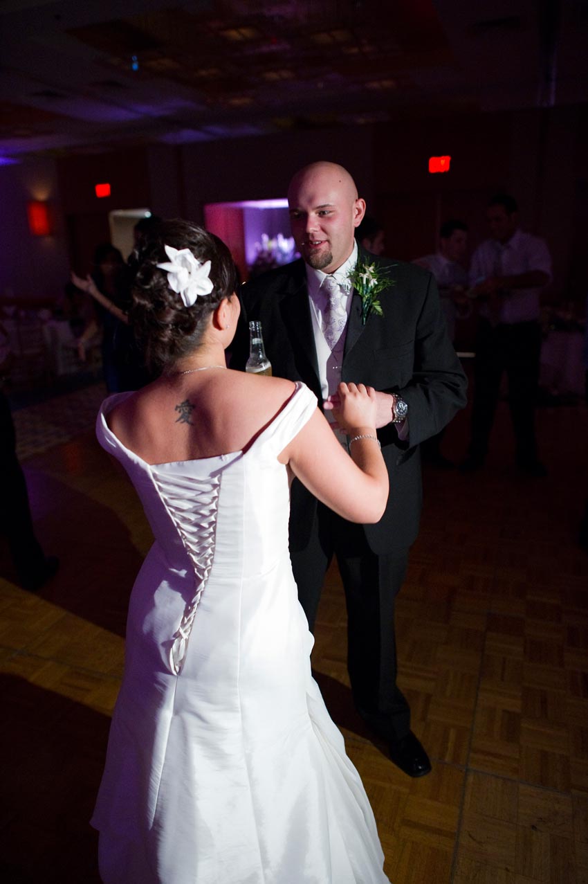The prep, ceremony, and reception were at the Charles Hotel, in Cambridge, under a strong sun in a cloudless sky. The formals were two blocks down, at J.F. Kennedy Park, by the Charles River. I liked all the vary-colored lights at the reception. About halfway through the evening, someone turned the lights completely off, and the room was lit only by the colored uplights, and the videographer's video light. It was a very interesting "nightclub" look. The food was fantastic - huge filet mignons cooked perfectly, with a delicious sauce over mashed potatoes, asparagus, and baby carrots (that's the one I had - the grilled balsamic chicken with sun-dried cherry demi glaze and herb risotto cake looked delicious also). It was a great wedding; congratulations to Irma and Bryan, and their families!