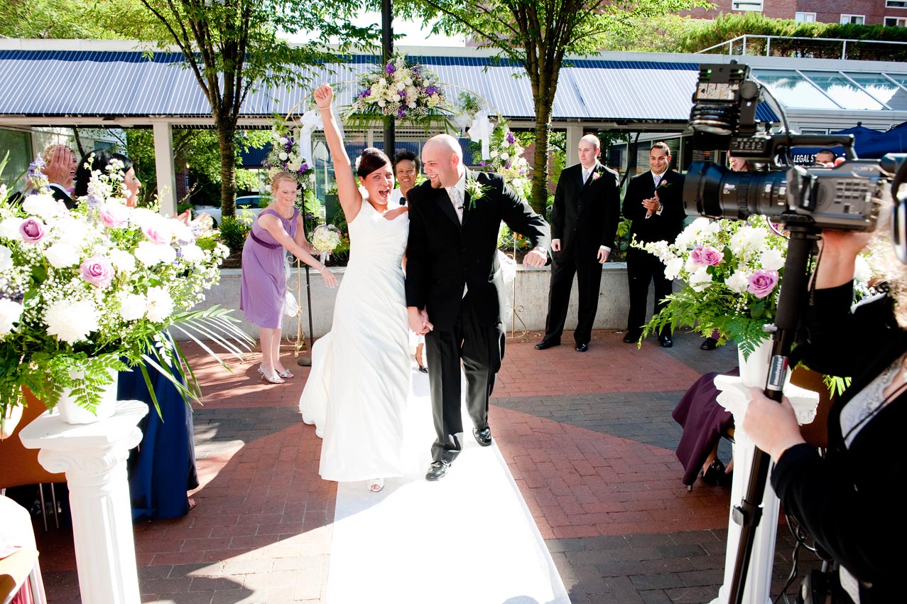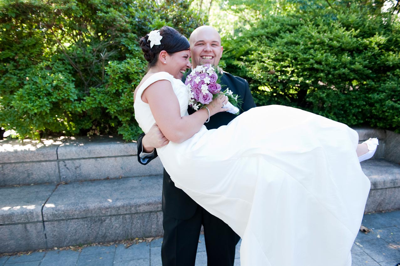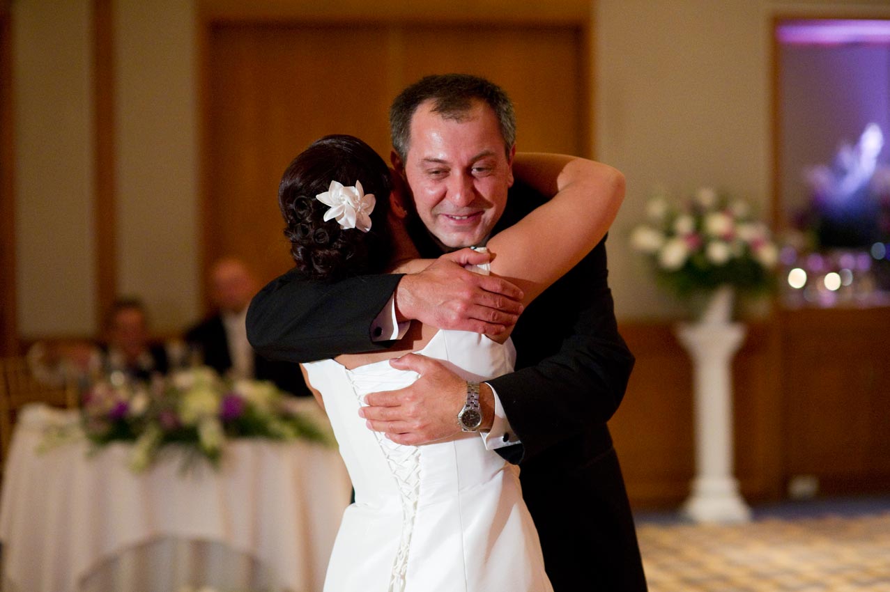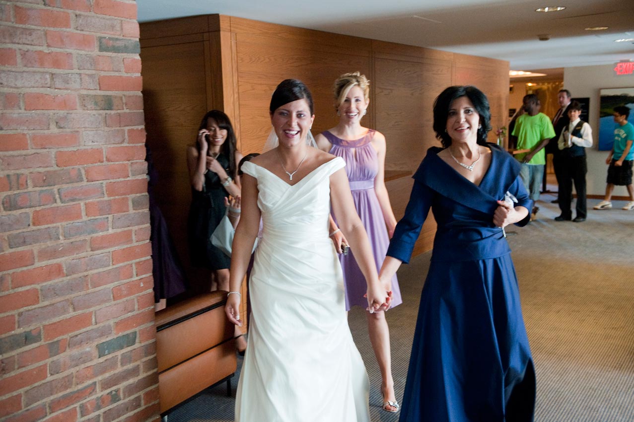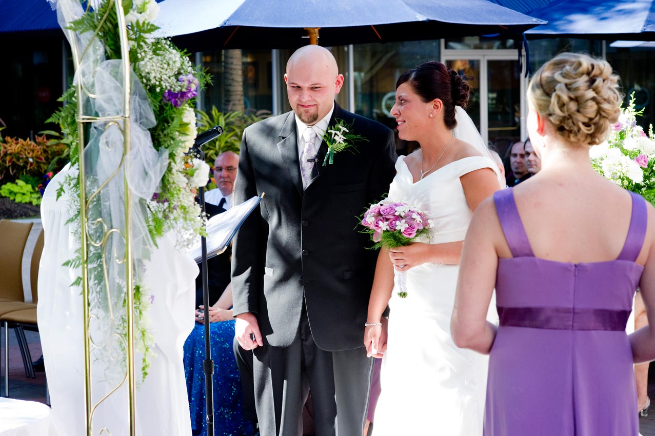 The prep, ceremony, and reception were at the Charles Hotel, in Cambridge, under a strong sun in a cloudless sky. The formals were two blocks down, at J.F. Kennedy Park, by the Charles River. I liked all the vary-colored lights at the reception. About halfway through the evening, someone turned the lights completely off, and the room was lit only by the colored uplights, and the videographer's video light. It was a very interesting "nightclub" look. The food was fantastic - huge filet mignons cooked perfectly, with a delicious sauce over mashed potatoes, asparagus, and baby carrots (that's the one I had - the grilled balsamic chicken with sun-dried cherry demi glaze and herb risotto cake looked delicious also). It was a great wedding; congratulations to Irma and Bryan, and their families!