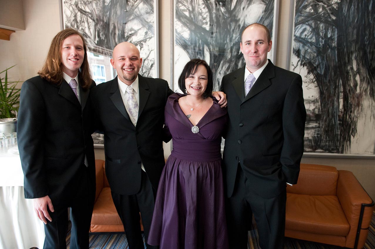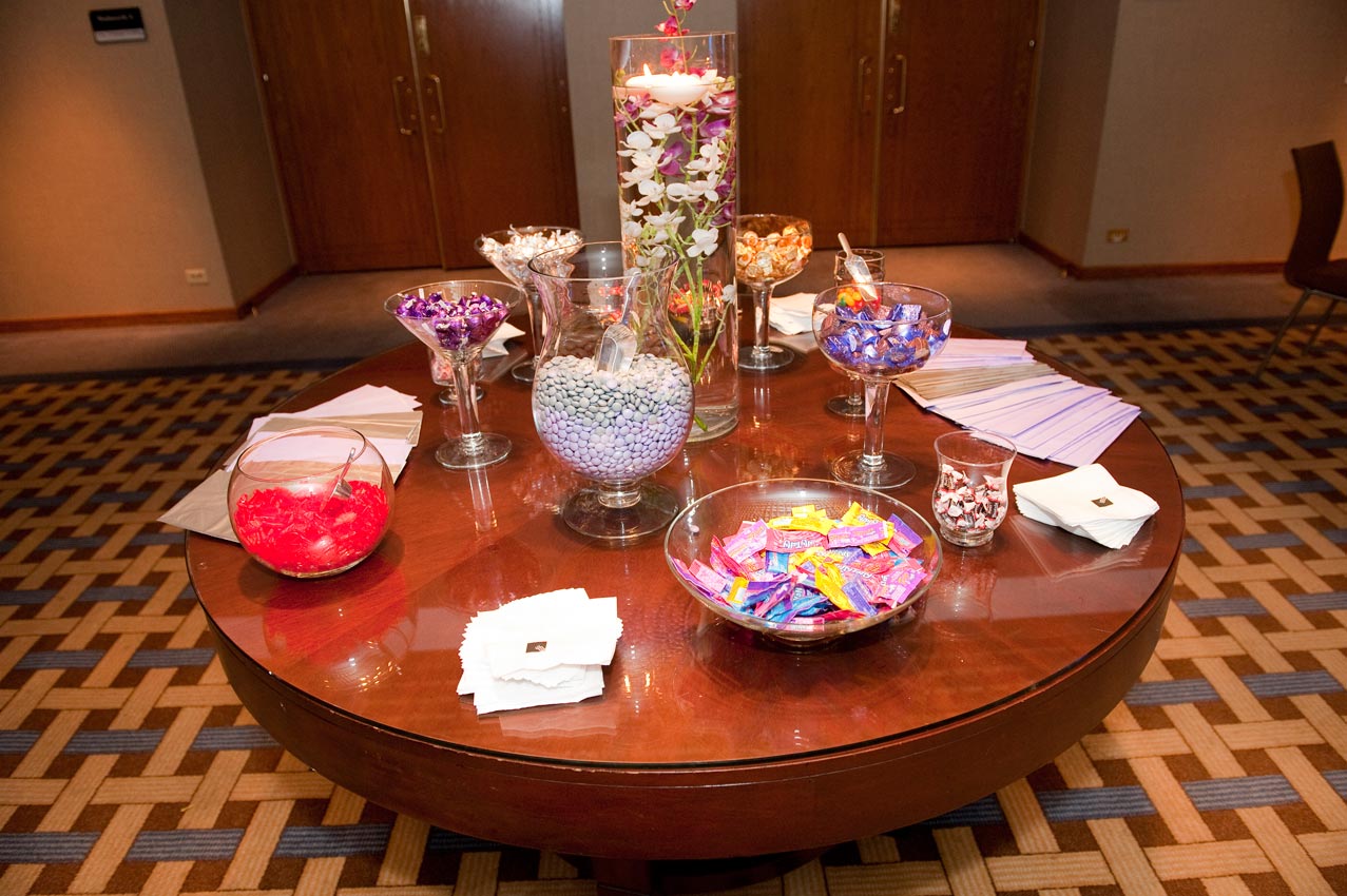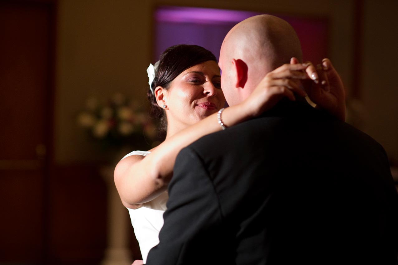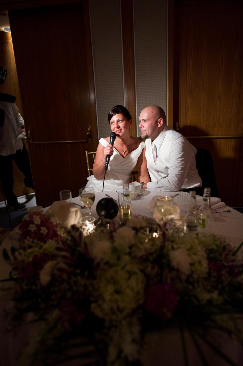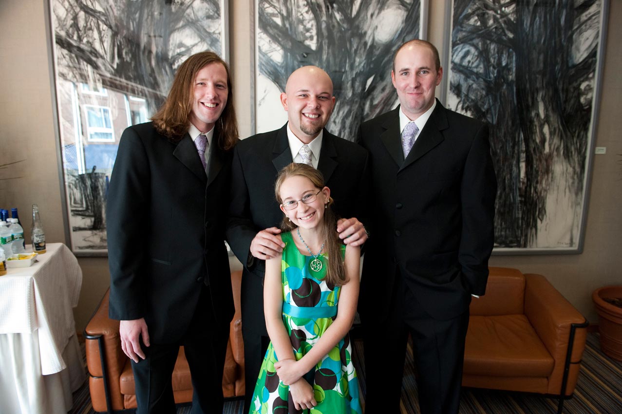 The prep, ceremony, and reception were at the Charles Hotel, in Cambridge, under a strong sun in a cloudless sky. The formals were two blocks down, at J.F. Kennedy Park, by the Charles River. I liked all the vary-colored lights at the reception. About halfway through the evening, someone turned the lights completely off, and the room was lit only by the colored uplights, and the videographer's video light. It was a very interesting "nightclub" look. The food was fantastic - huge filet mignons cooked perfectly, with a delicious sauce over mashed potatoes, asparagus, and baby carrots (that's the one I had - the grilled balsamic chicken with sun-dried cherry demi glaze and herb risotto cake looked delicious also). It was a great wedding; congratulations to Irma and Bryan, and their families!