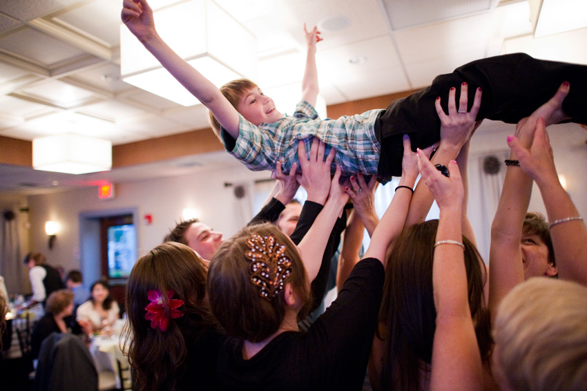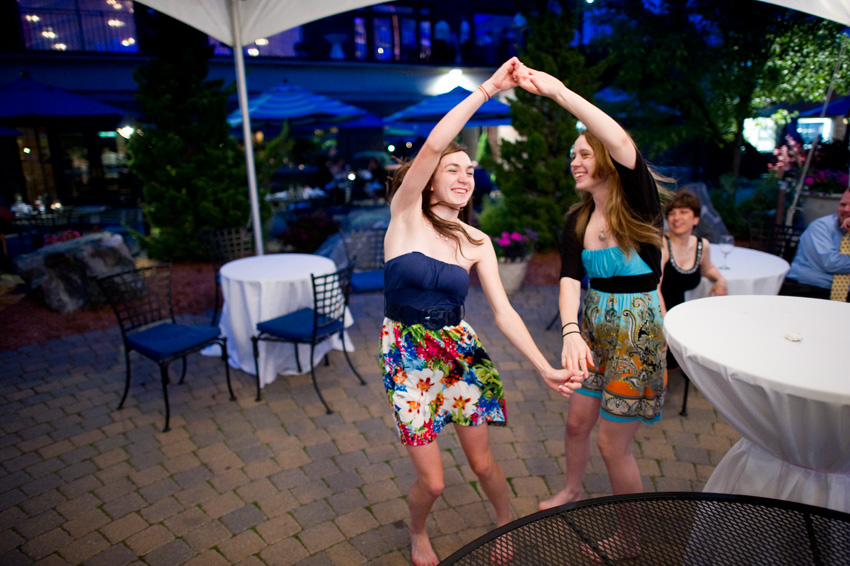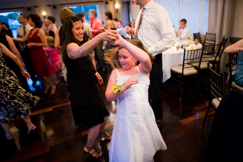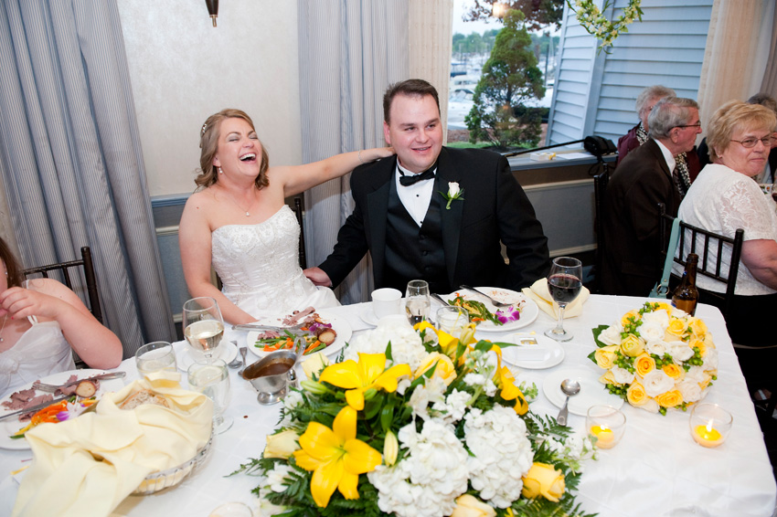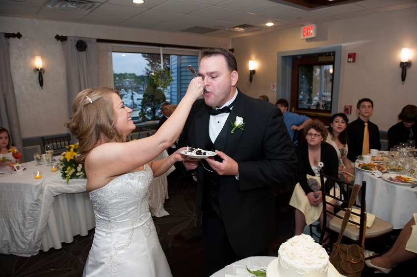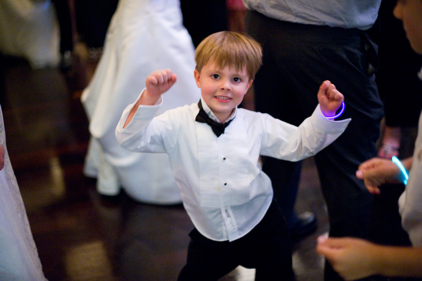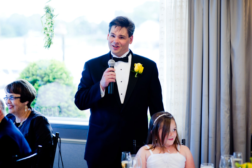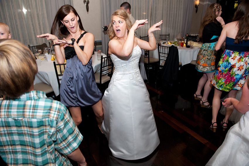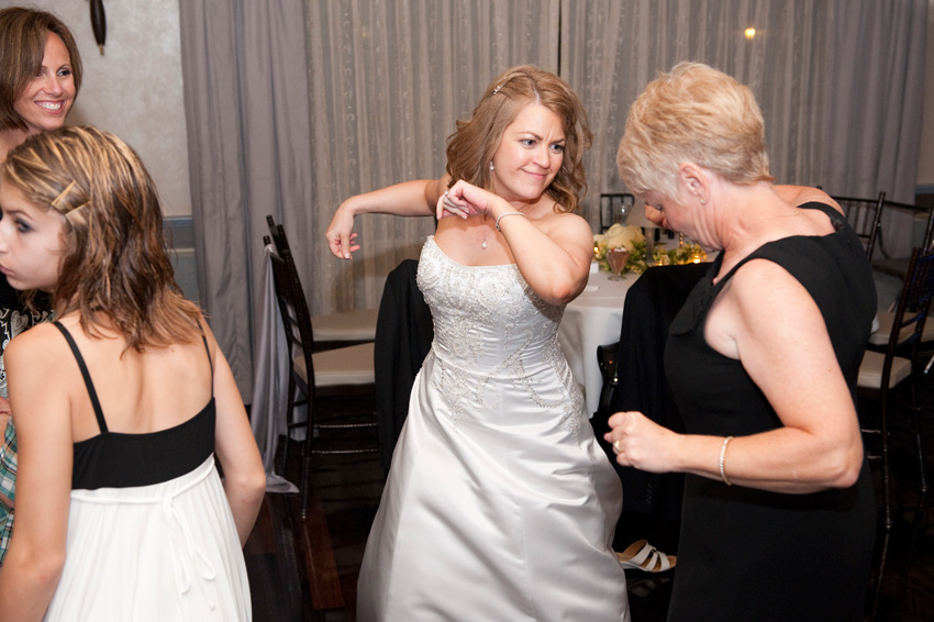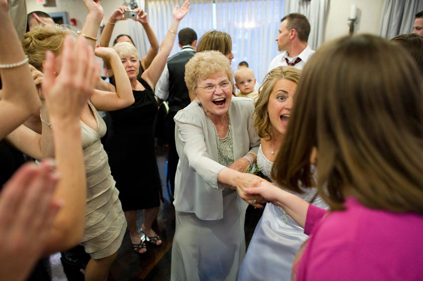 We had harsh sun for the rehearsal the day before the wedding, but the next day it was mostly cloudy, so the sun wasn't in everyones' eyes. A few sprinkles served to remind us of what we were missing. The evening was clear, so we were able to get some outdoor shots. The rings were shot on a "wedding-cake" shell. The dancing was fantastic and everyone really enjoyed themselves. Congratulations, Julie and Steve!