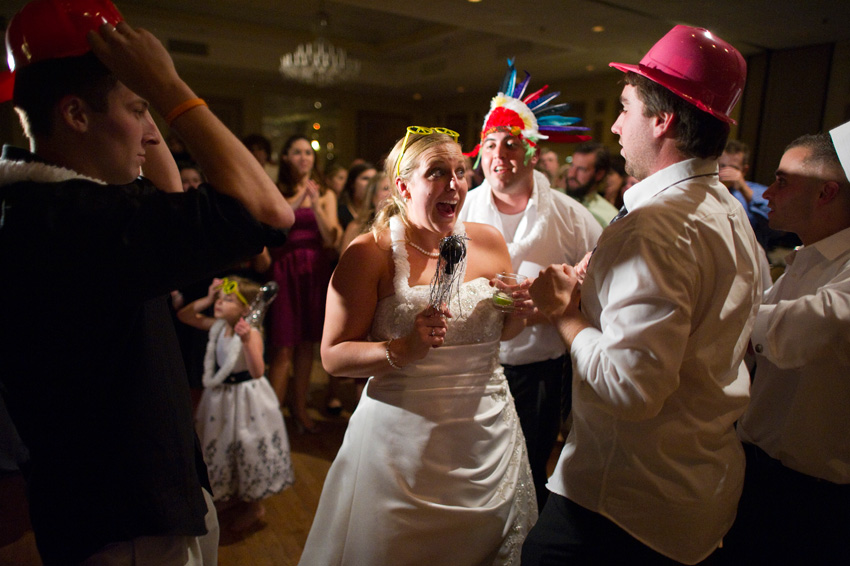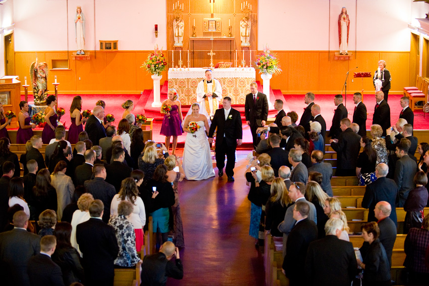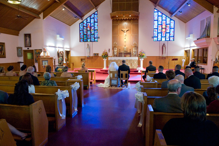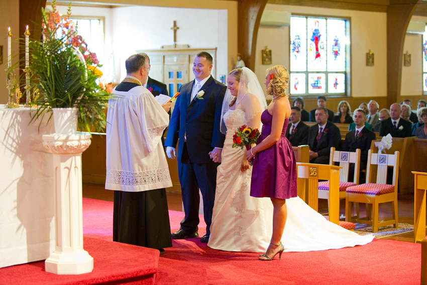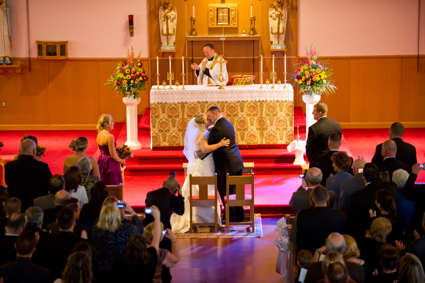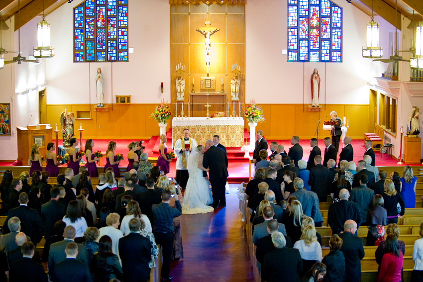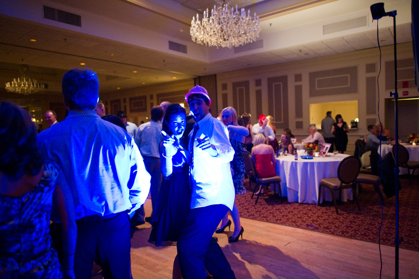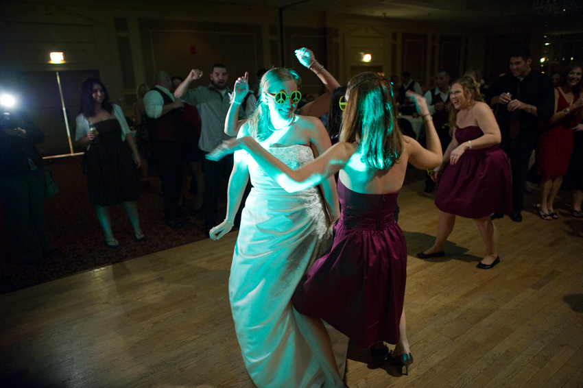 This was another opportunity for me to be second shooter. The church was the widest I can remember seeing; I got balcony views of the early part of the ceremony, and then shot from various angles. The reception was marked by good lighting at first, then the light went out and the DJ's colored lighting largely took over. The various colors playing over the dancers made for really interesting photos!