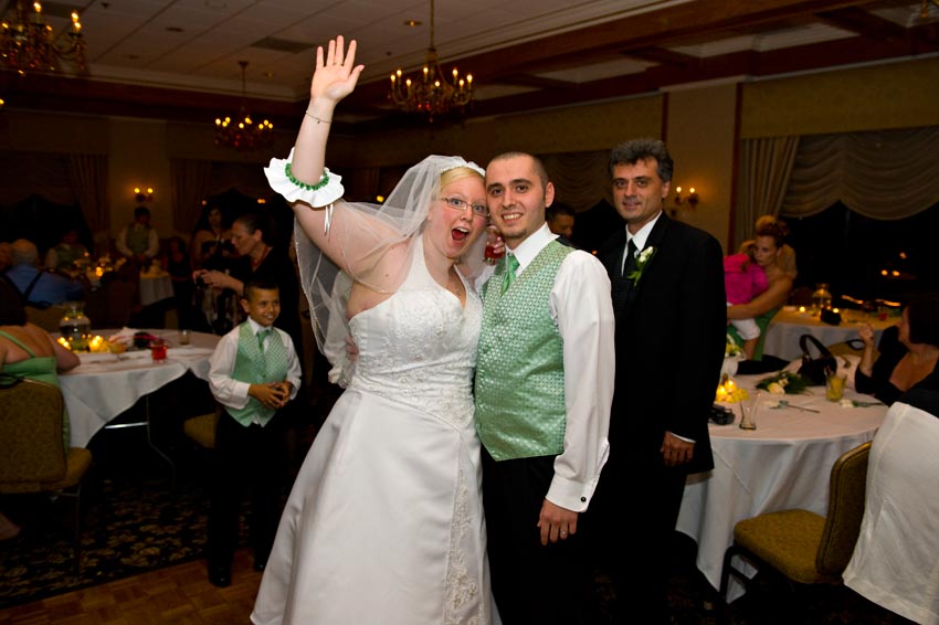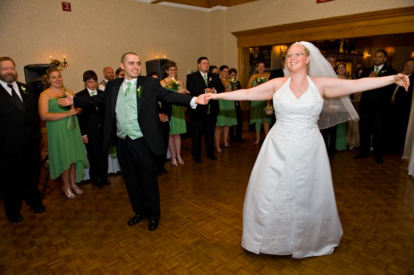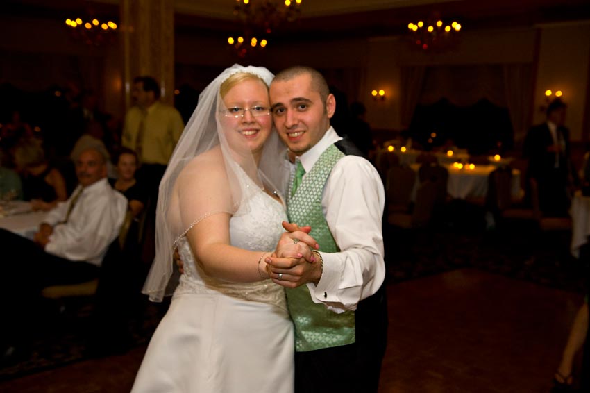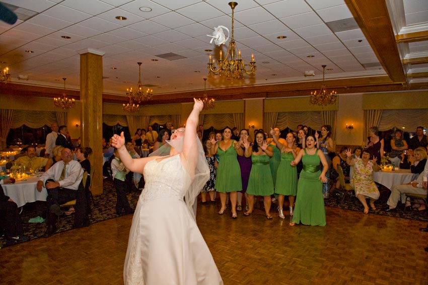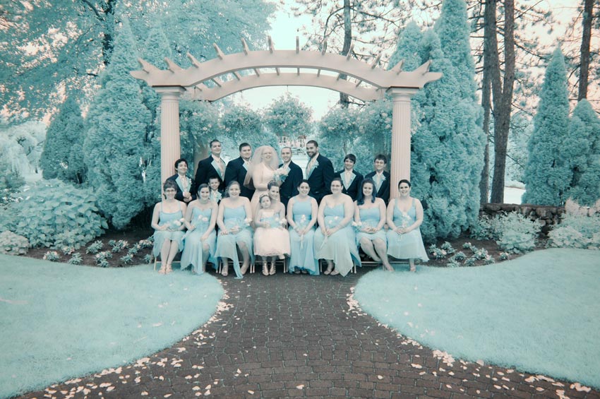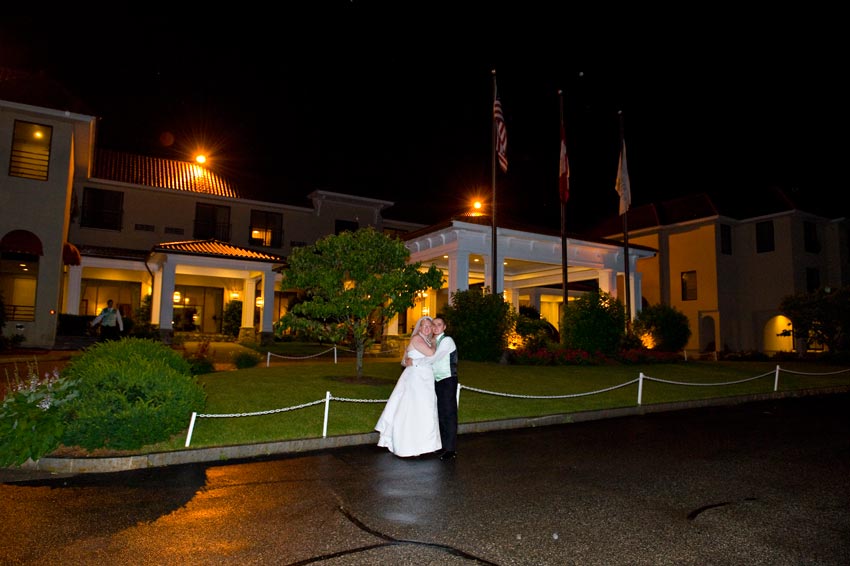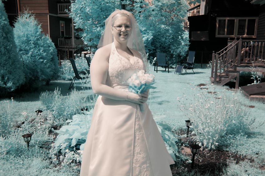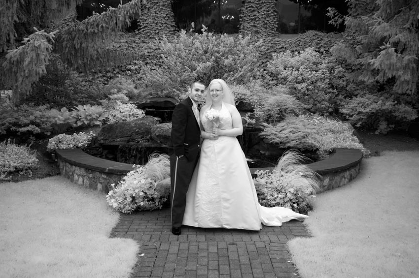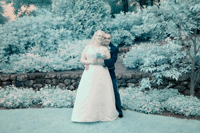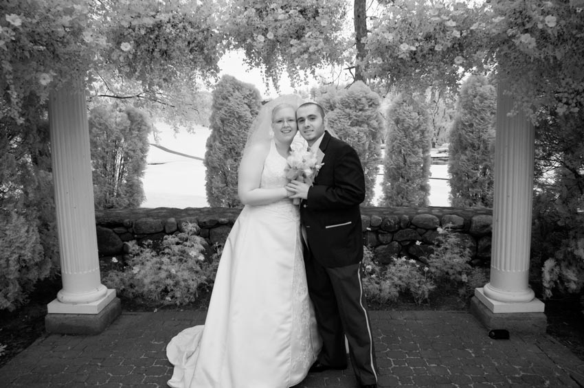 The ceremony was at St. Ann's church in Somerville, a big, gorgeous church. Then on to the Andover Country Club for formals and the reception. The formals also included a few shots in infrared light, a part of the light spectrum which looks quite different from the visible light part of the spectrum. The reception featured a wonderful first dance from the bride and groom, complete with a dip. They must have practiced the dance a lot, but hadn't mentioned it up till then, so it was a surprise. Later in the evening, just as we were getting to go outside for some nightime shots, it began to rain. But we went anyway, ran out into a light rain, grabbed quick shots, and ran back! Great fun!