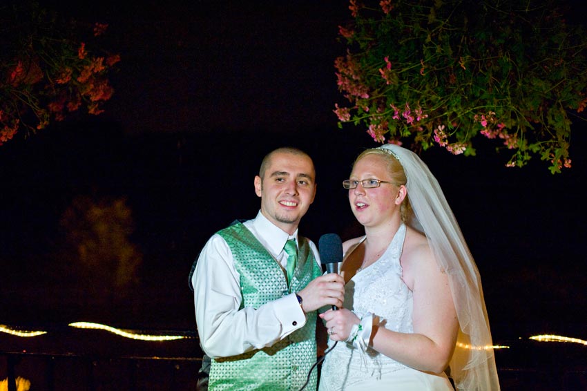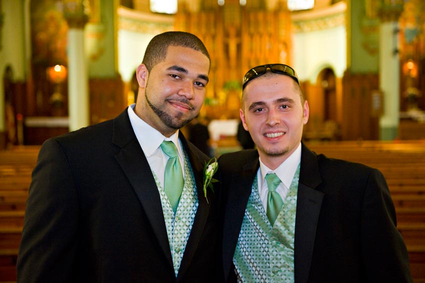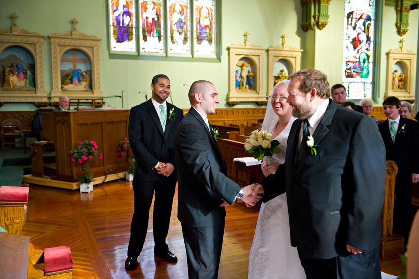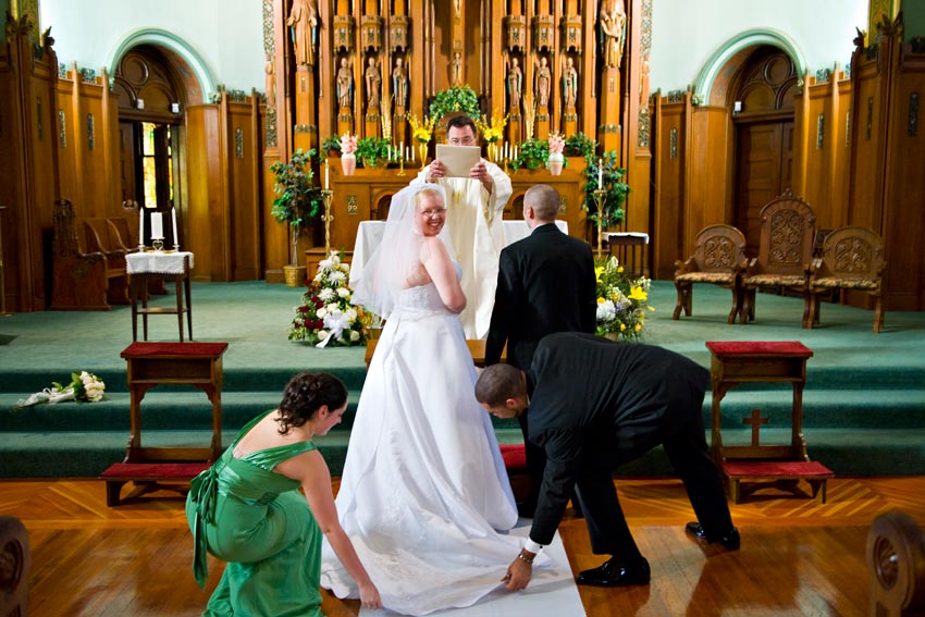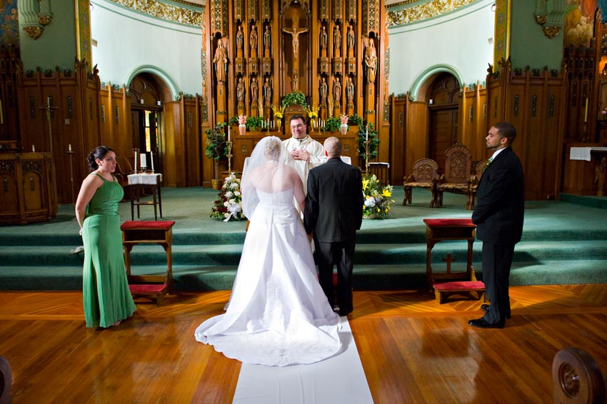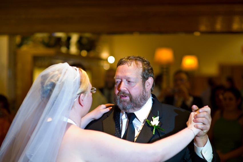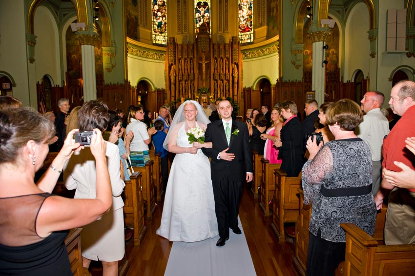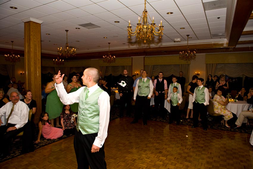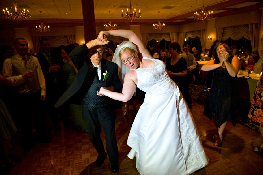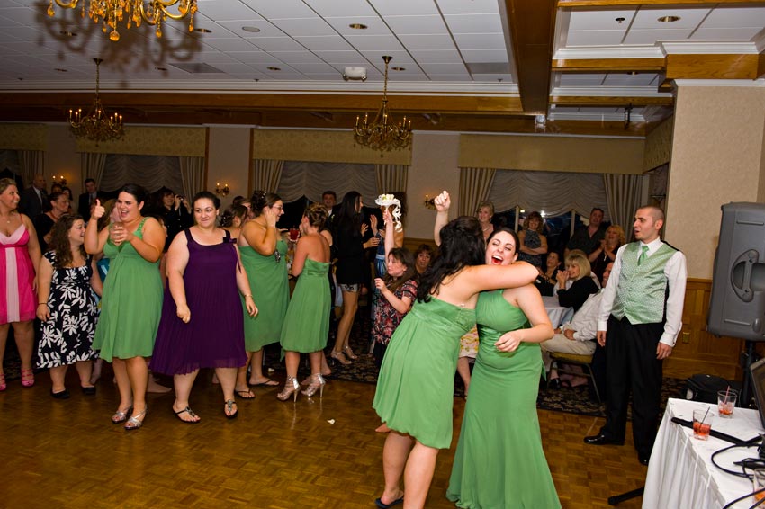 The ceremony was at St. Ann's church in Somerville, a big, gorgeous church. Then on to the Andover Country Club for formals and the reception. The formals also included a few shots in infrared light, a part of the light spectrum which looks quite different from the visible light part of the spectrum. The reception featured a wonderful first dance from the bride and groom, complete with a dip. They must have practiced the dance a lot, but hadn't mentioned it up till then, so it was a surprise. Later in the evening, just as we were getting to go outside for some nightime shots, it began to rain. But we went anyway, ran out into a light rain, grabbed quick shots, and ran back! Great fun!