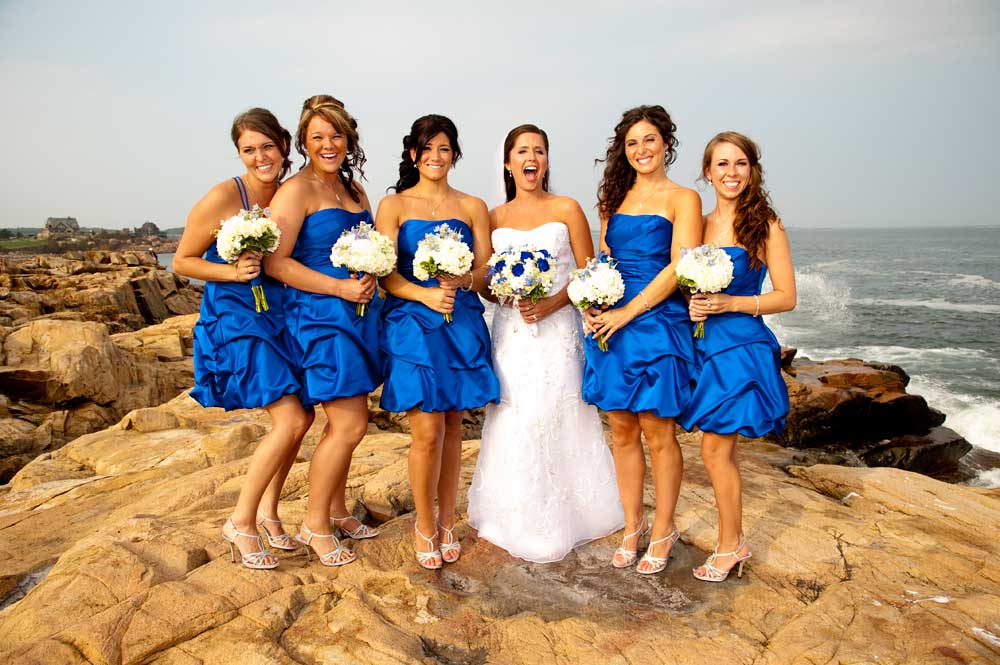 The groom carried the bride over the rocks, and the bridesmaids followed, on their own, in high heels......