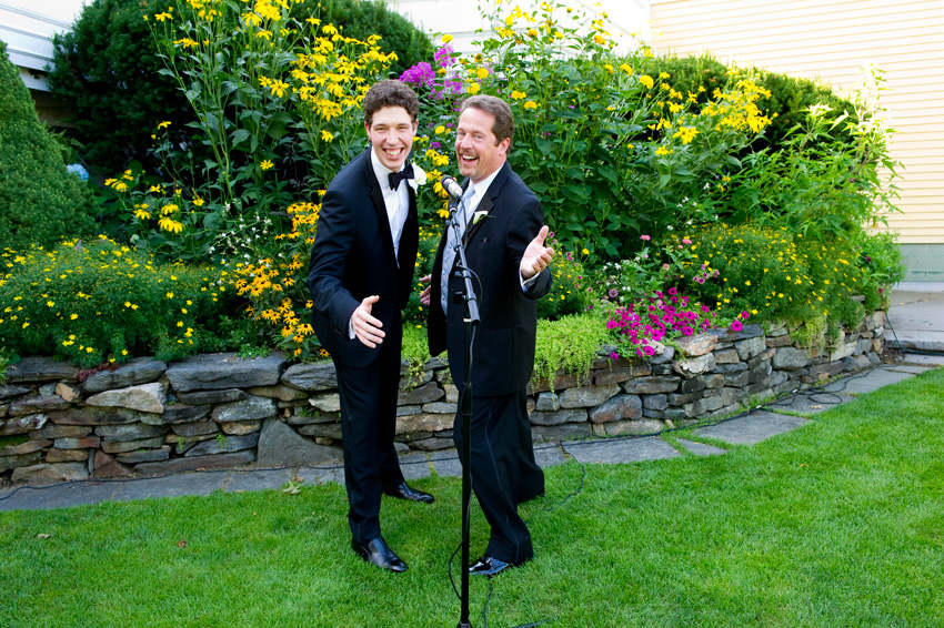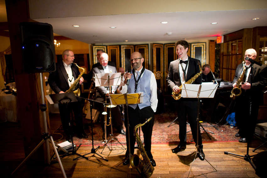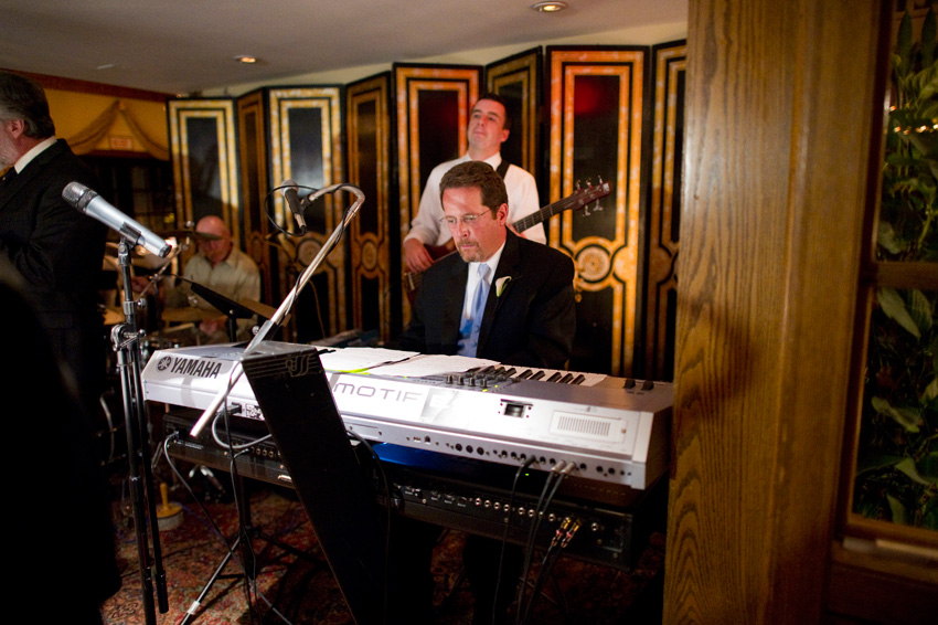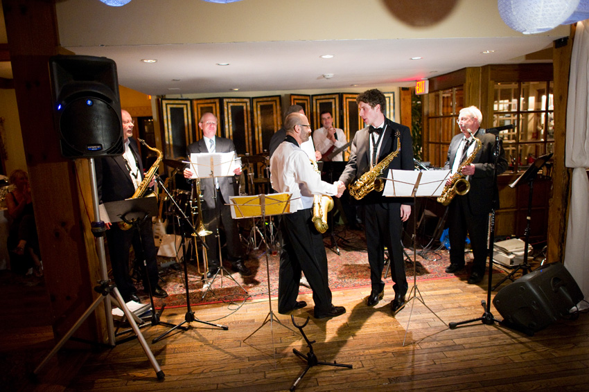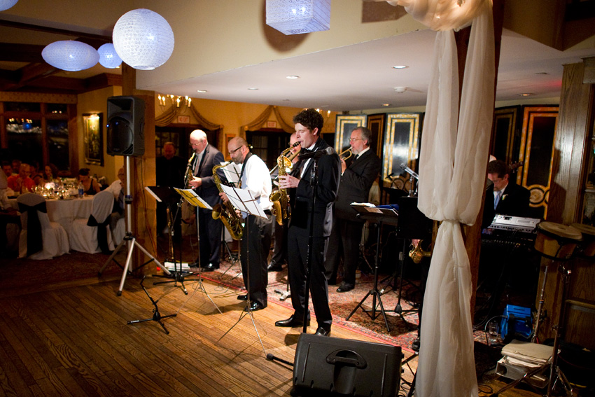 I was second shooting for this wedding, which took place on a beautifully sunny day, without the slightest threat of rain. Both families have a background and interest in music, and joined the band (mostly formed the band, actually) for musical performances. The bride's dad was band leader, and played sax, the groom played sax (with a marvelous solo), the groom's dad played keyboard, and the bride performed vocals. It was really quite a delight!