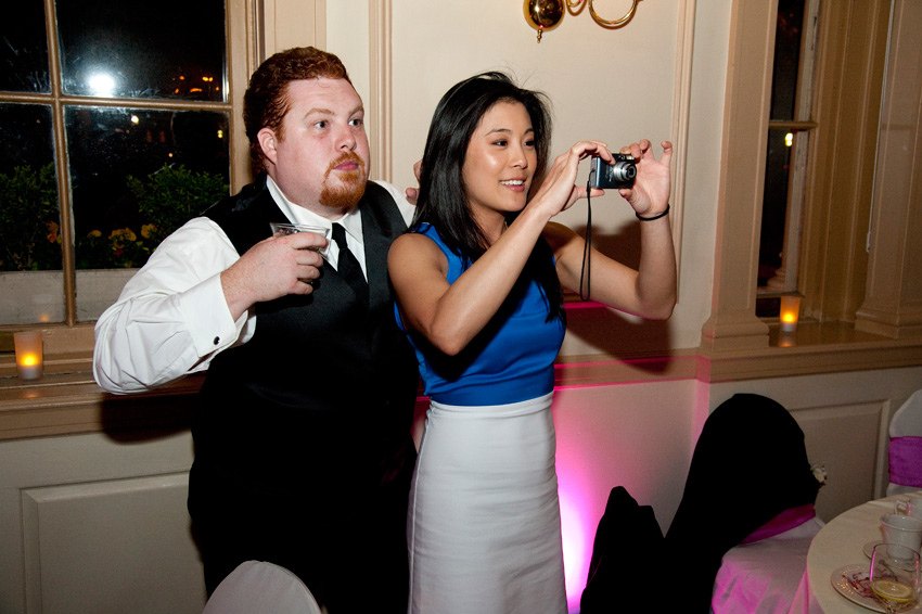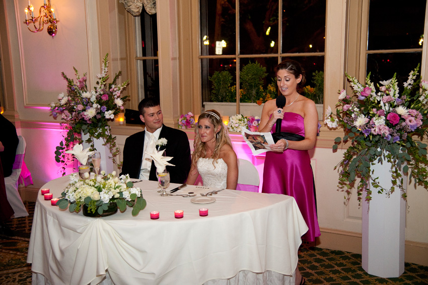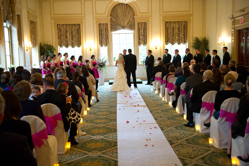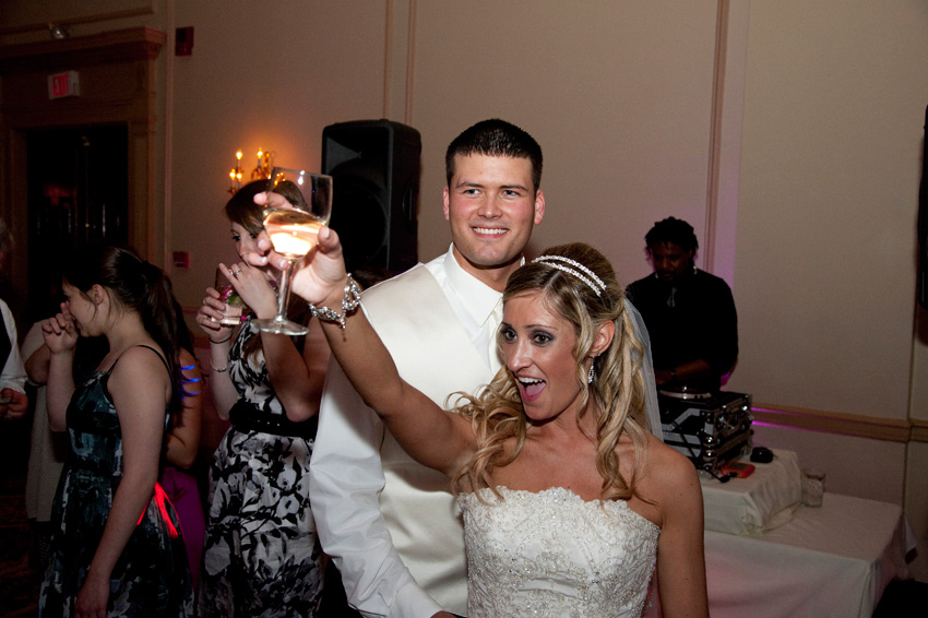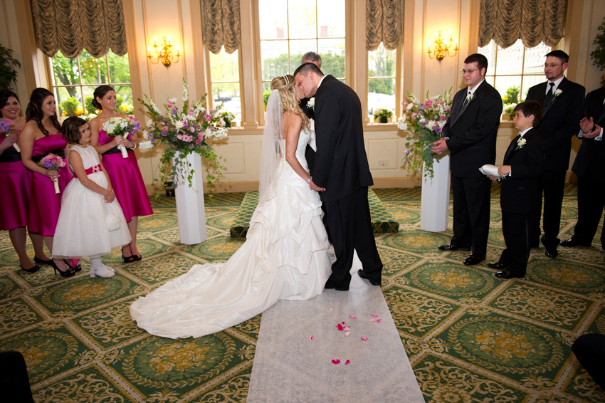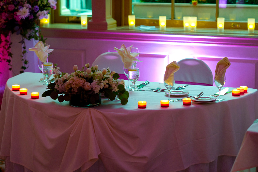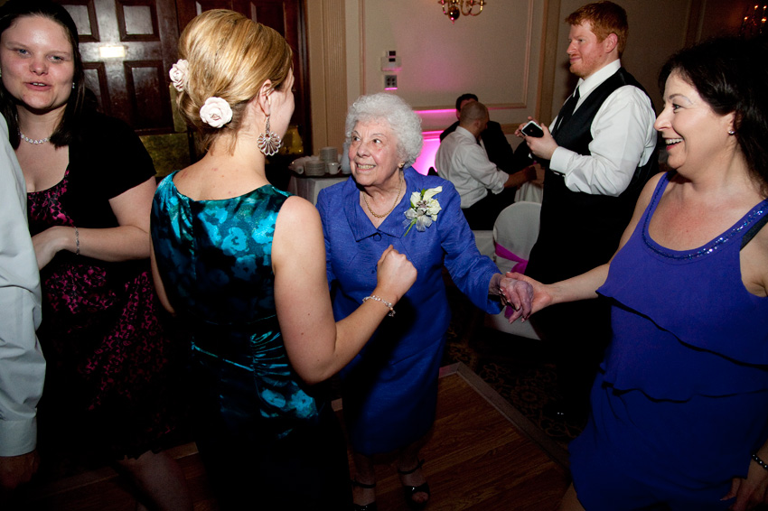 It was perfect weather for a wedding - a little overcast, so we didn't have to deal with squinting into the sun, but the rain held off until the next day. The lighting in the hotel was quite varied, with lots of yellows and pinks, and a few greens, so there was quite a marked contrast between flash shots and available light shots. I included one shot with each "look" in many of the settings below. The DJ, "Rolling Rick" had the place jumping, and everyone had a blast dancing. The meal featured a roasted sliced tenderloin of beef, cooked to a perfect medium rare, that was cut-with-a-fork tender, and flavorfully delicious! There were lots of interesting things to photograph, although I admit I had a hard time taking the camera away from the bride and groom. This was another fun wedding for me, and everyone else seemed to enjoy themselves tremendously also!