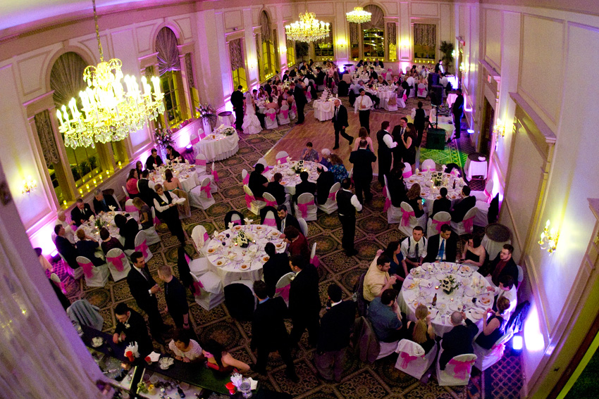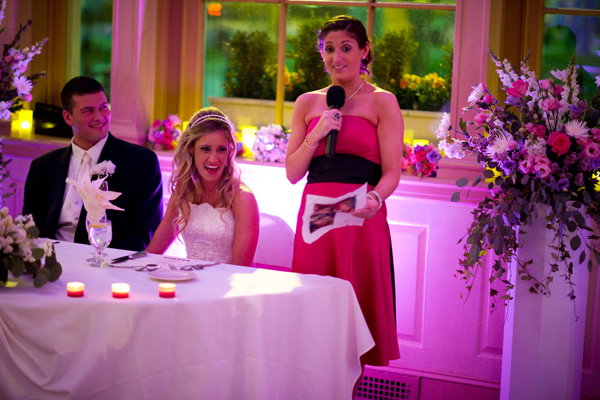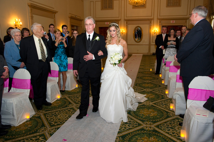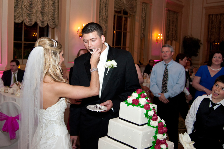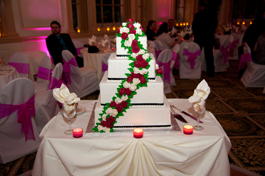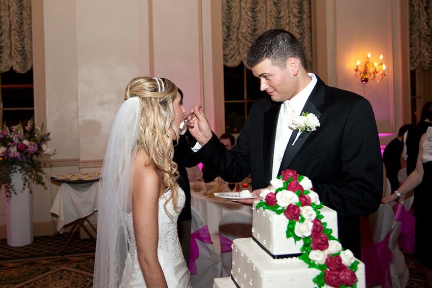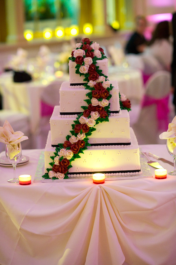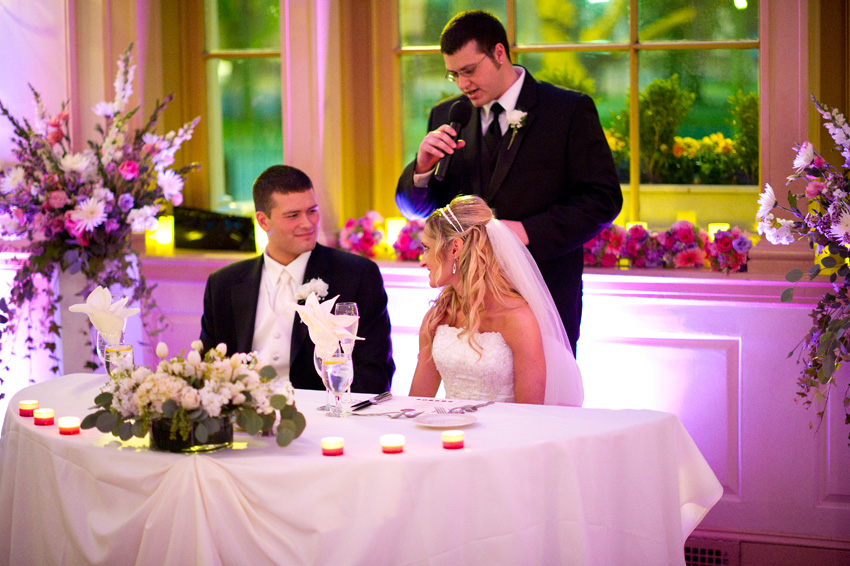 It was perfect weather for a wedding - a little overcast, so we didn't have to deal with squinting into the sun, but the rain held off until the next day. The lighting in the hotel was quite varied, with lots of yellows and pinks, and a few greens, so there was quite a marked contrast between flash shots and available light shots. I included one shot with each "look" in many of the settings below. The DJ, "Rolling Rick" had the place jumping, and everyone had a blast dancing. The meal featured a roasted sliced tenderloin of beef, cooked to a perfect medium rare, that was cut-with-a-fork tender, and flavorfully delicious! There were lots of interesting things to photograph, although I admit I had a hard time taking the camera away from the bride and groom. This was another fun wedding for me, and everyone else seemed to enjoy themselves tremendously also!