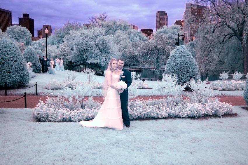 The Prep was at the Langham hotel in Boston, with fantastic views of the surrounding architecture. Then to a very dramatic church, the Gate of Heaven. Formals were in the Boston Public Garden, where we enjoyed sunny weather (so I could get some infrared shots) and the threatening rain held off. And then to the Nahant Country Club for dinner and dancing to a live band (they were really good). Everyone had a blast, including me. This was my last wedding of the year, and a great one to end the season on. Thanks, Melissa and Scott!