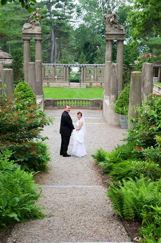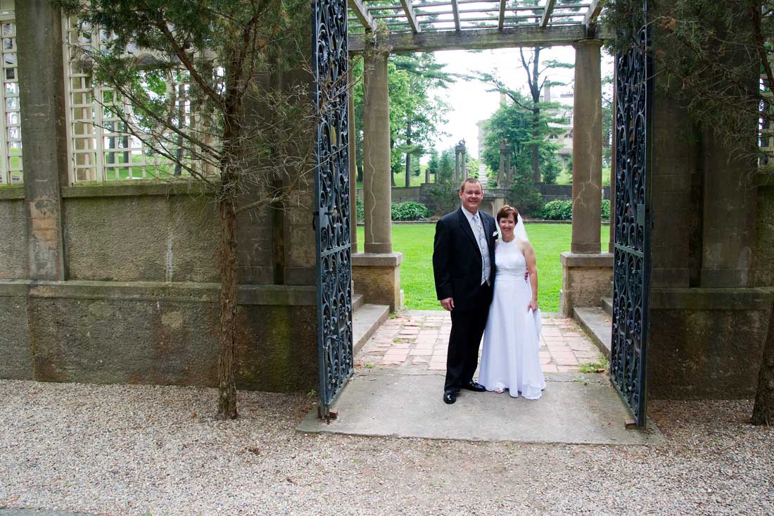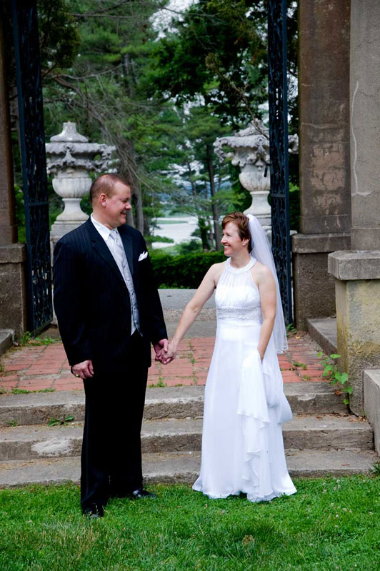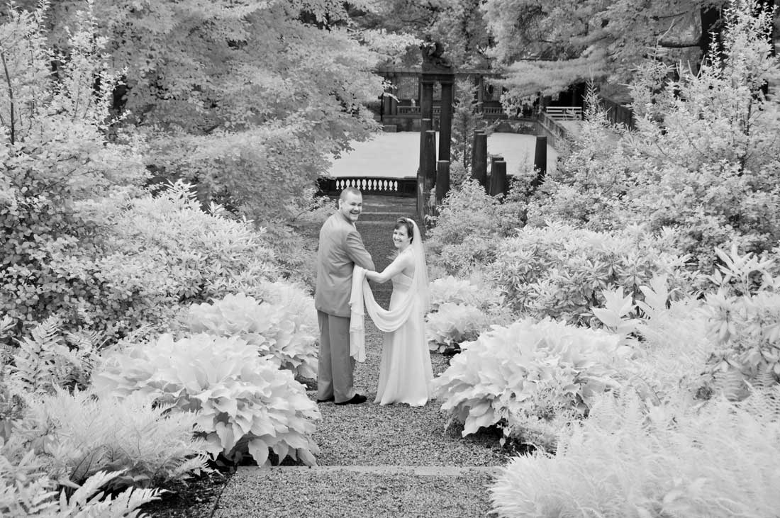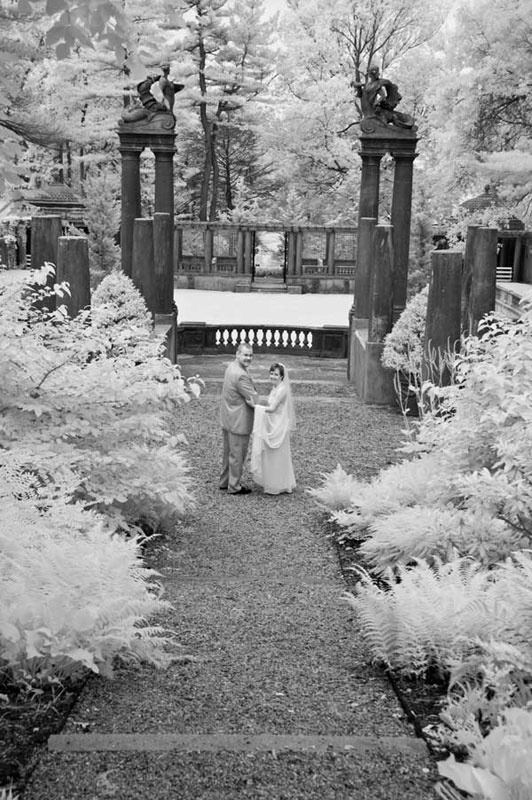 We had enough light in the early part of the afternoon so we could get some infrared shots, but the good times didn't last. Minne and John met before the ceremony, so we could do most of the formals early, and we were, in fact, able to get the bridal party and family formals done on the "Grand Allee". Then, we went off to photograph the bride and groom at various locations. I looked at the time index on the photos later, and from the first shot of the bride and groom, to the last shot before it began to rain and we headed back, it was just 9 minutes. But, we did get a lot done in that short time. Then, a great meal, toasts, and lots of outdoor dancing (the rain had stopped), as it gradually got darker. It was a fun, great wedding!