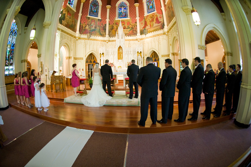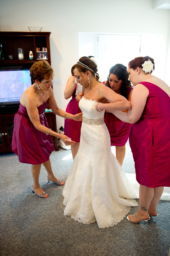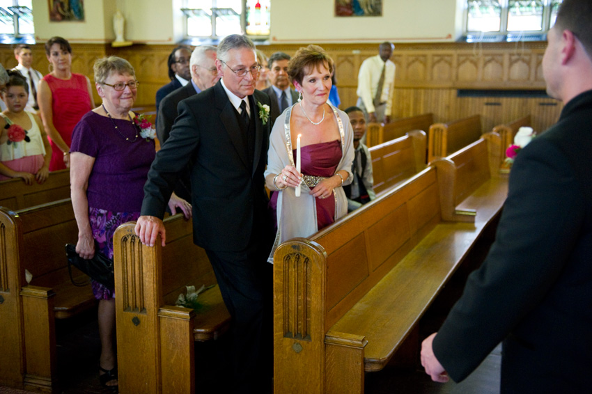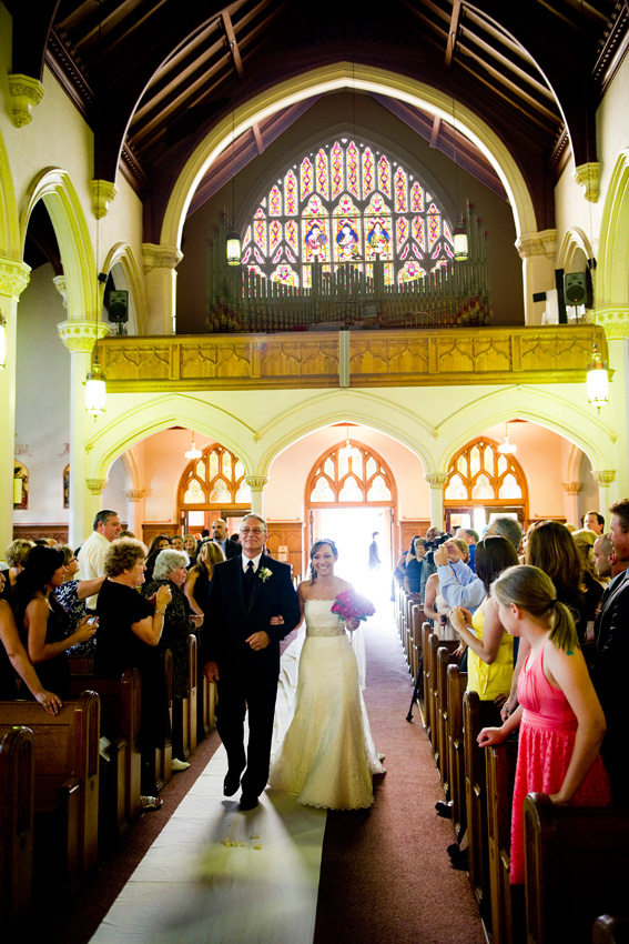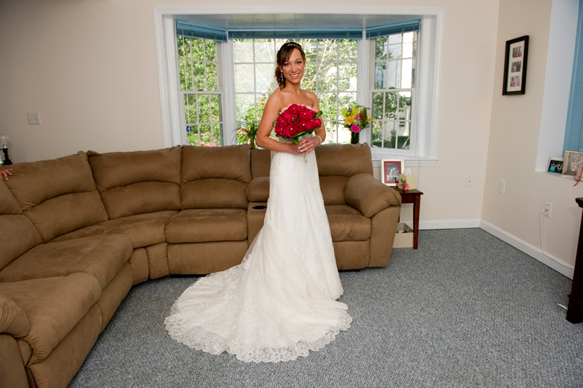 The ceremony was at Immaculate Conception in Everett. The rear doors were left open to the blindingly bright sunlight, giving a gorgeous, ethereal effect as people entered and exited. Then on to the Andover Country Club for formals and the reception. We made it into the garden, and the rain started before we could take a single shot. So, we moved to the back veranda, and did the formals overlooking beautiful views of the golf course. The groom carried the bride into the reception, and danced with her literally in his arms for a while before her feet ever touched the floor. There were toasts (the priest who performed the ceremony, maid of honor and best man), and lots of dancing. The rain had long since stopped, so we were able to finish the evening with a shot in front of the entrance. It was a great day and evening!