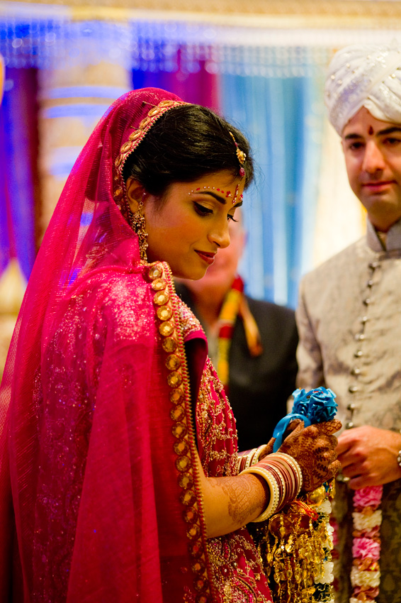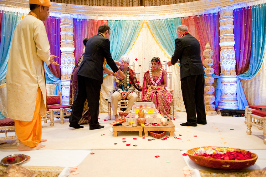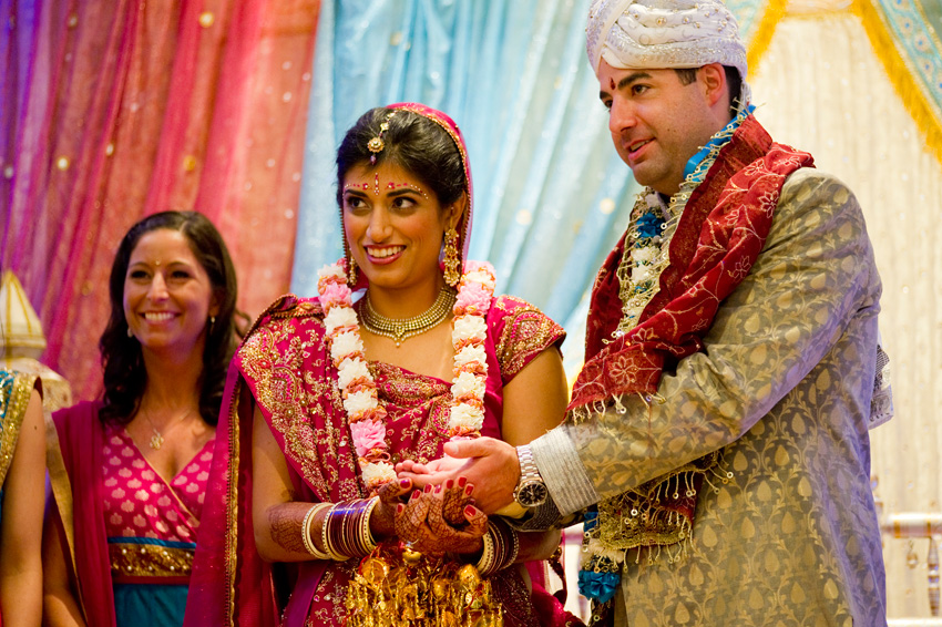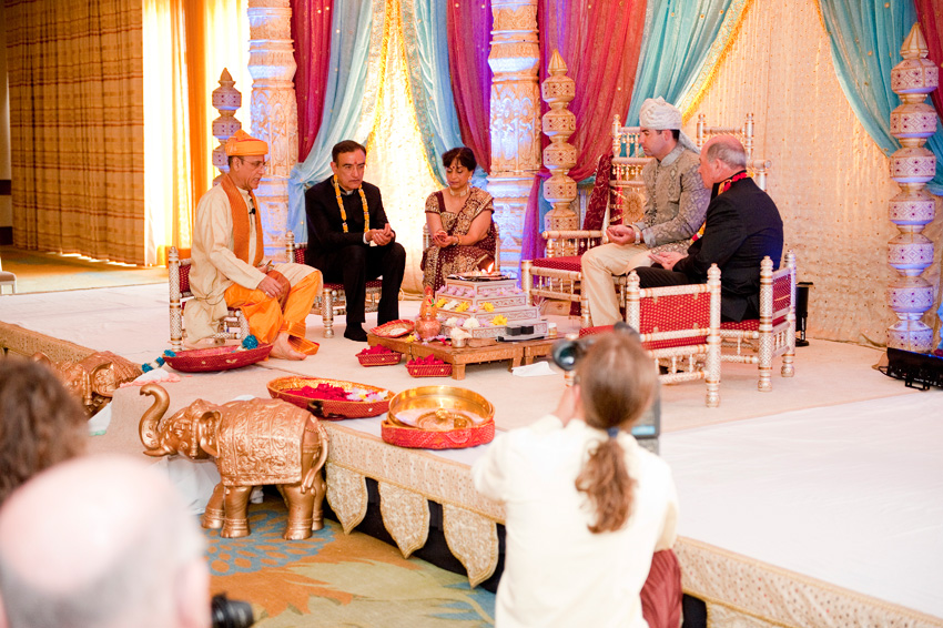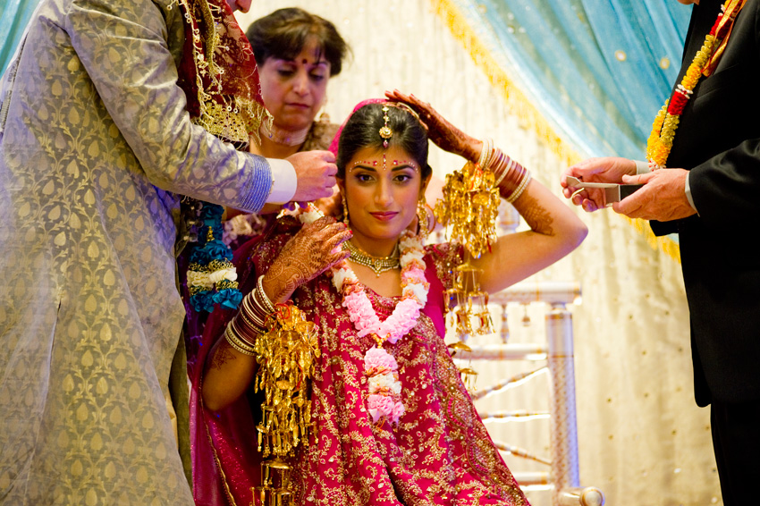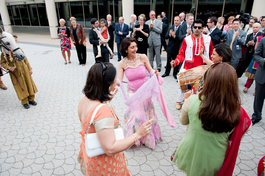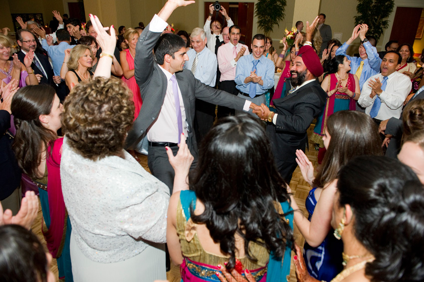 I was the second shooter on this traditional Hindu/North Indian wedding. The day was clear, with just the lightest of occasional sprinkles. The Groom and his "sarbala" (nephew) rode a horse for the "Baraat" procession to the Bride's mother. The drum was fantastic, producing lots of energetic dancing in the crowd of well-wishers. Then, we went inside for the ceremony. It was colorful in the extreme! The reception featured a live band and two choreographed dances. Loads of fun! Congratulations on a terrific wedding!