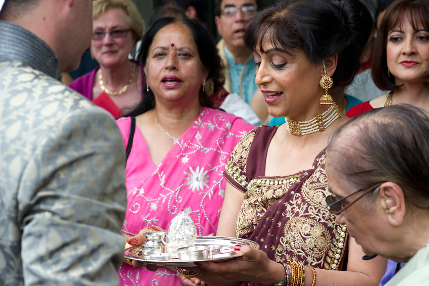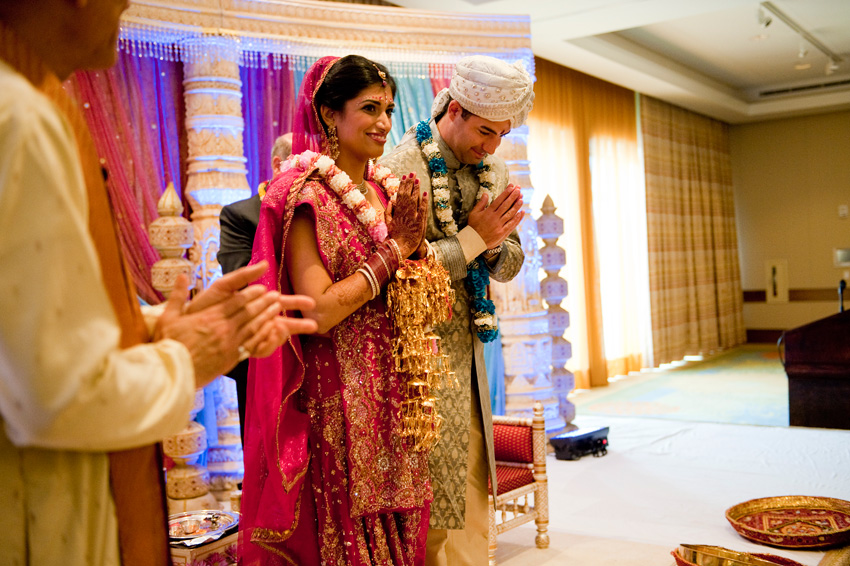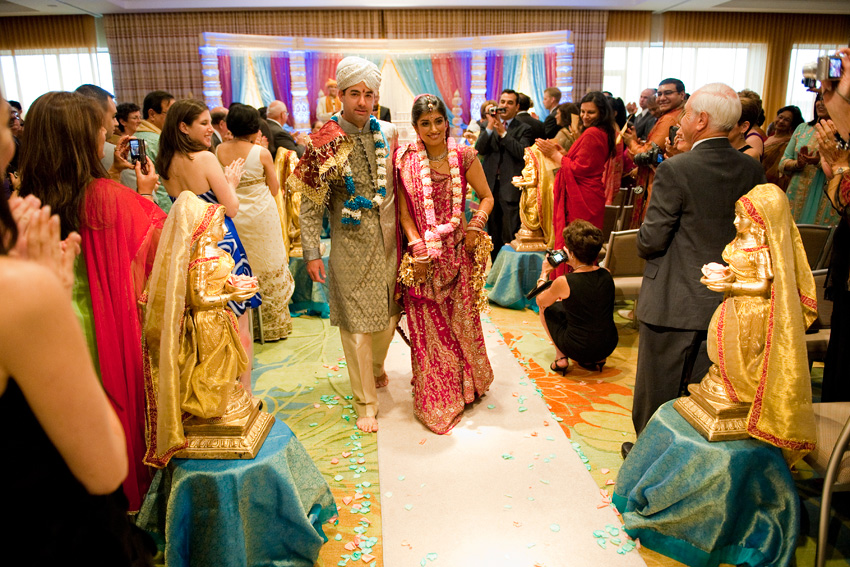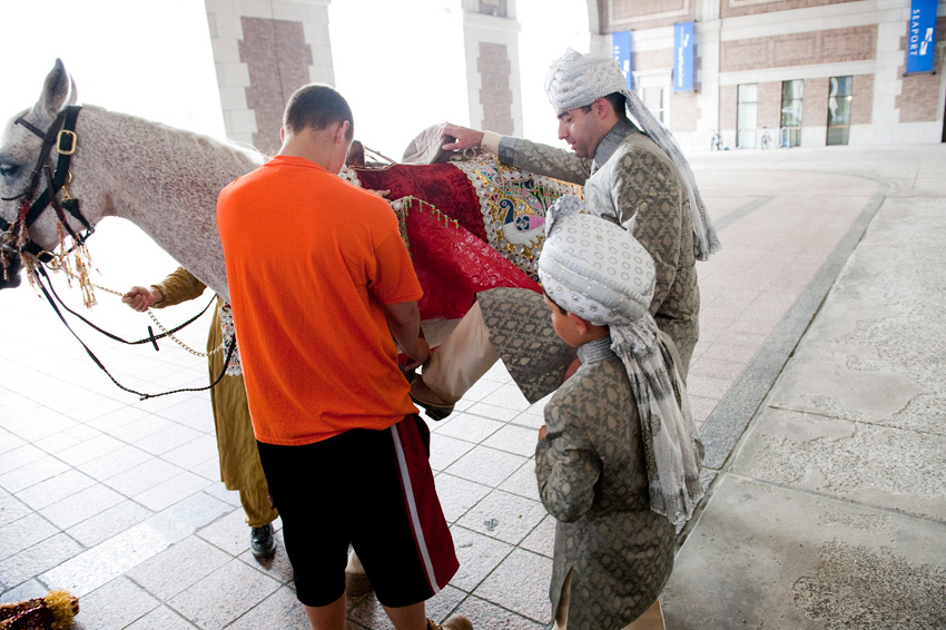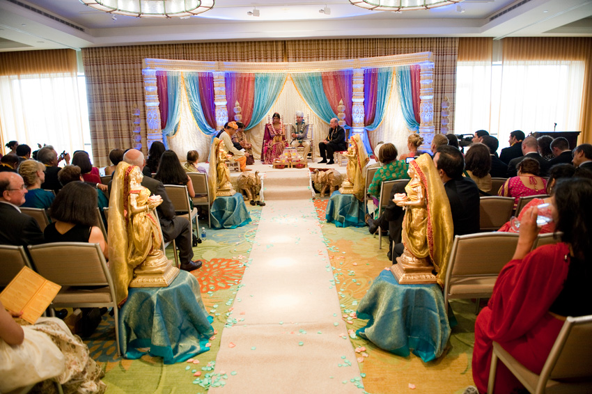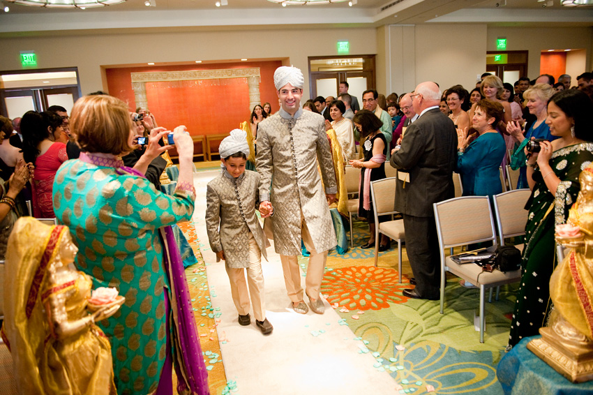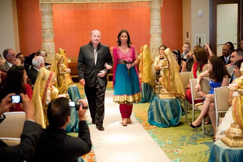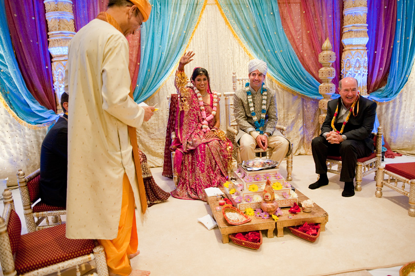 I was the second shooter on this traditional Hindu/North Indian wedding. The day was clear, with just the lightest of occasional sprinkles. The Groom and his "sarbala" (nephew) rode a horse for the "Baraat" procession to the Bride's mother. The drum was fantastic, producing lots of energetic dancing in the crowd of well-wishers. Then, we went inside for the ceremony. It was colorful in the extreme! The reception featured a live band and two choreographed dances. Loads of fun! Congratulations on a terrific wedding!